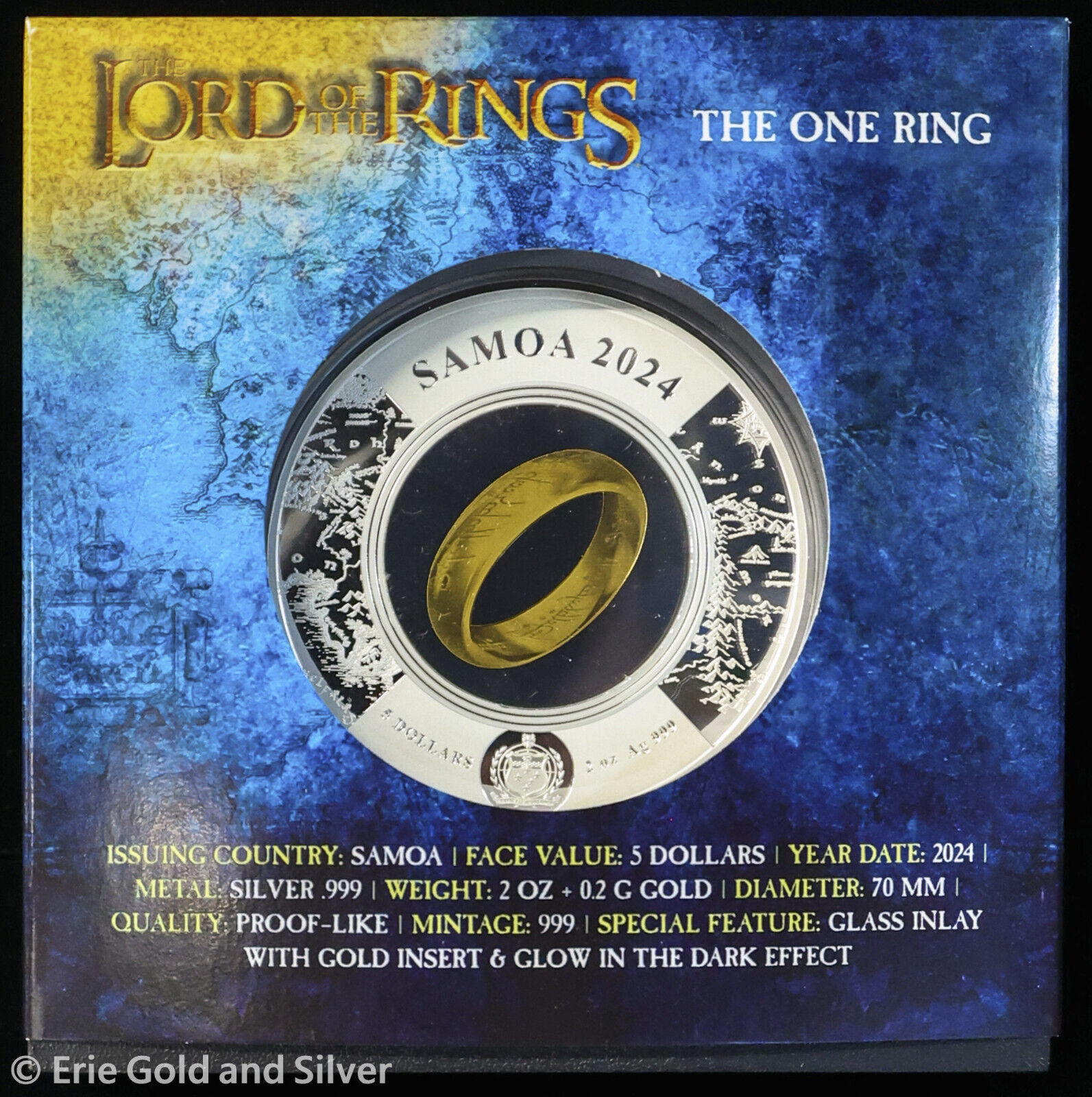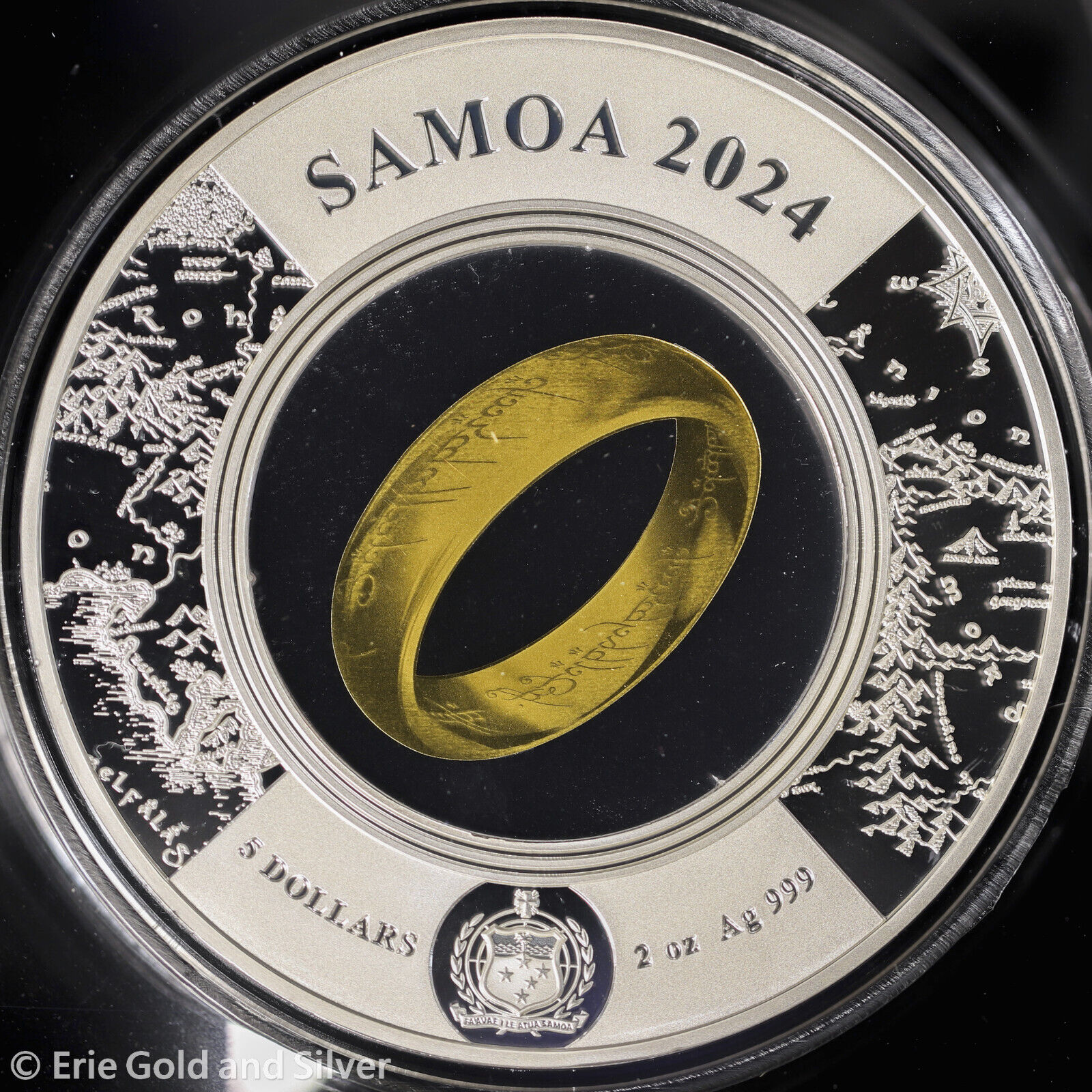 2024 $5 Samoa Lord of the Rings One Ring 2 oz Silver w/ .2 g Gold Inlay in OGP
