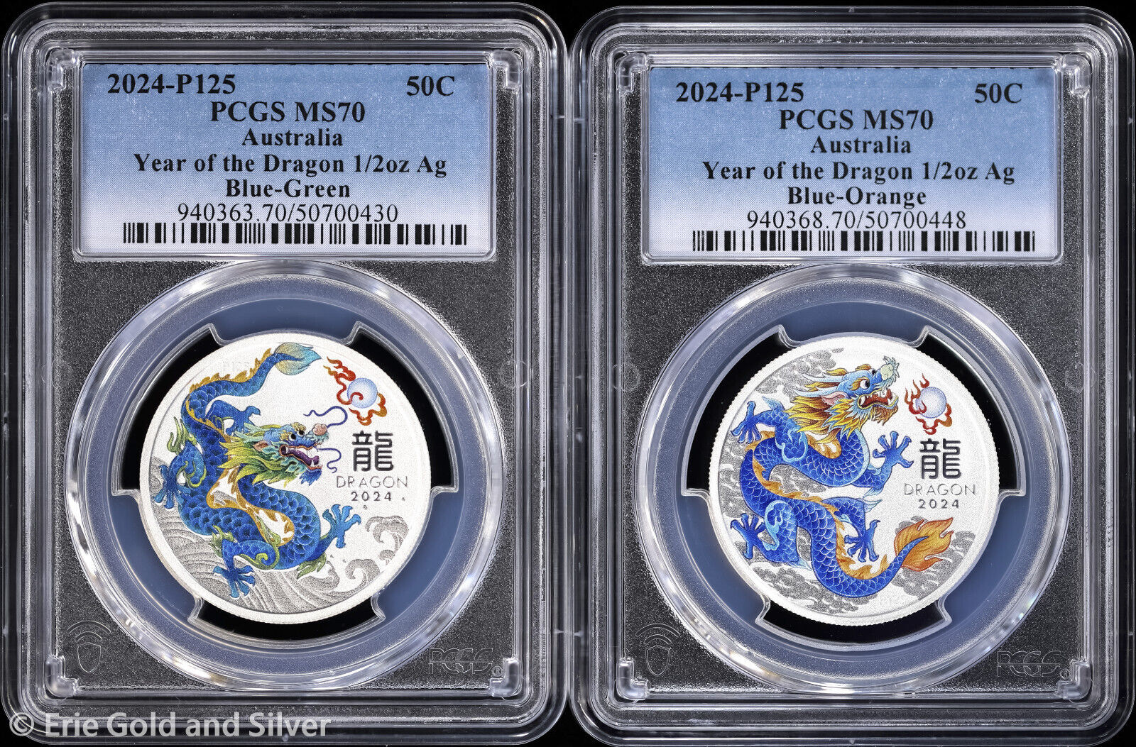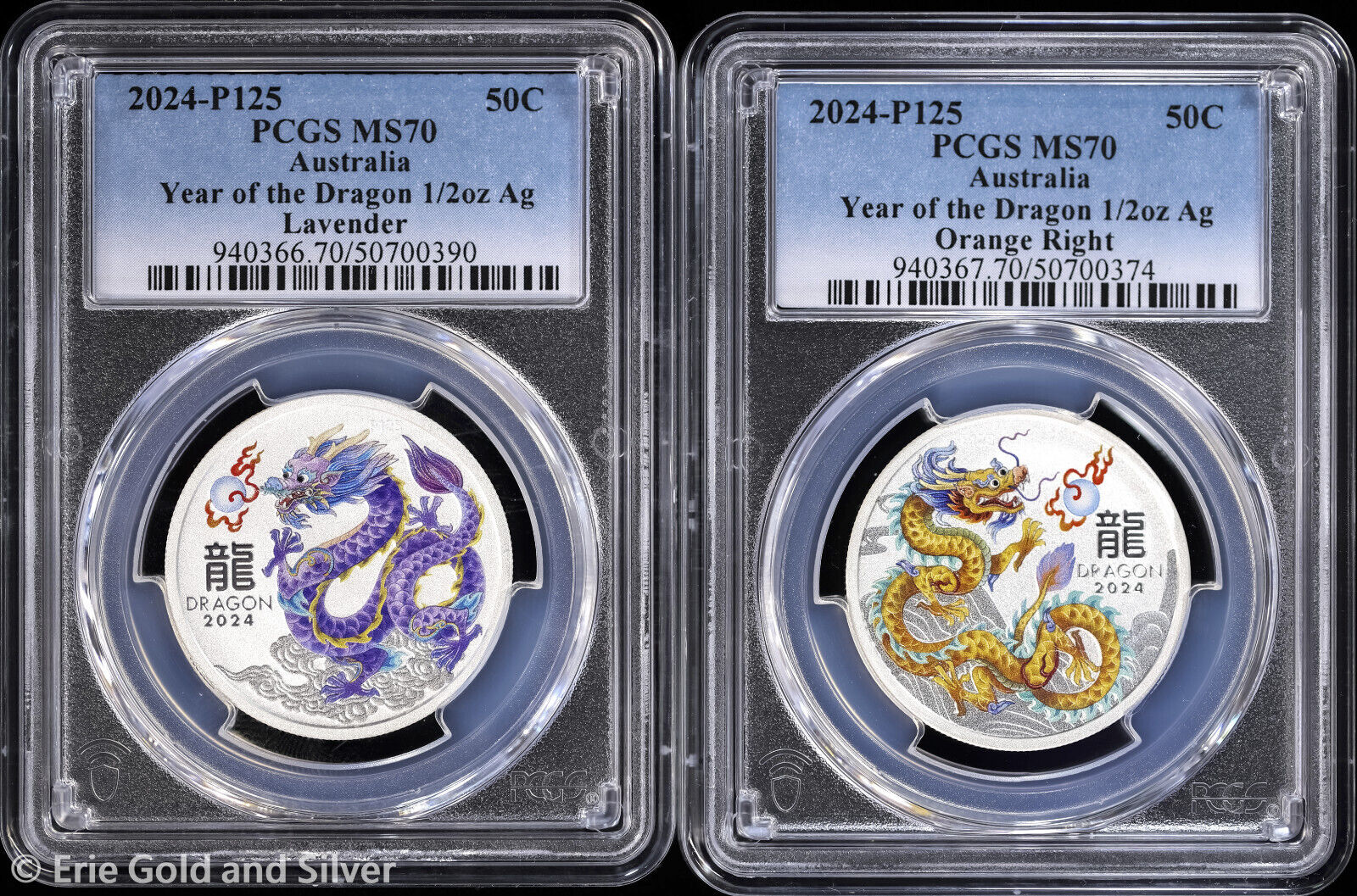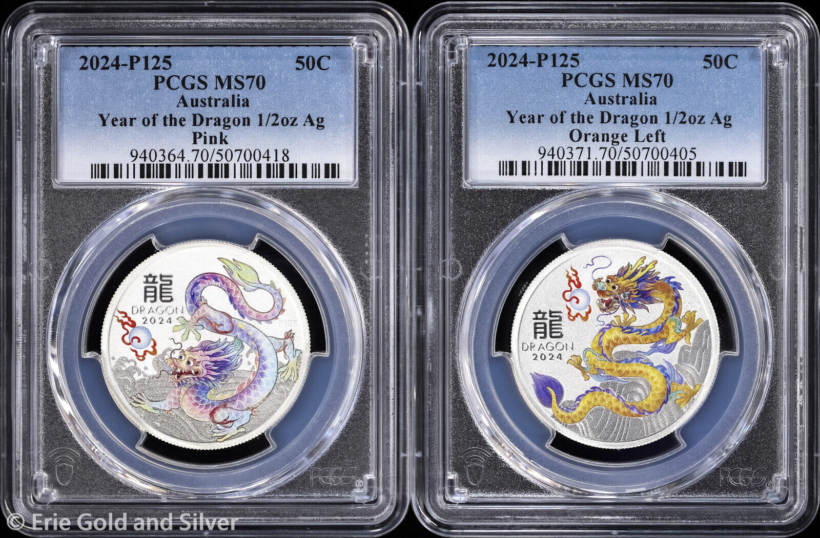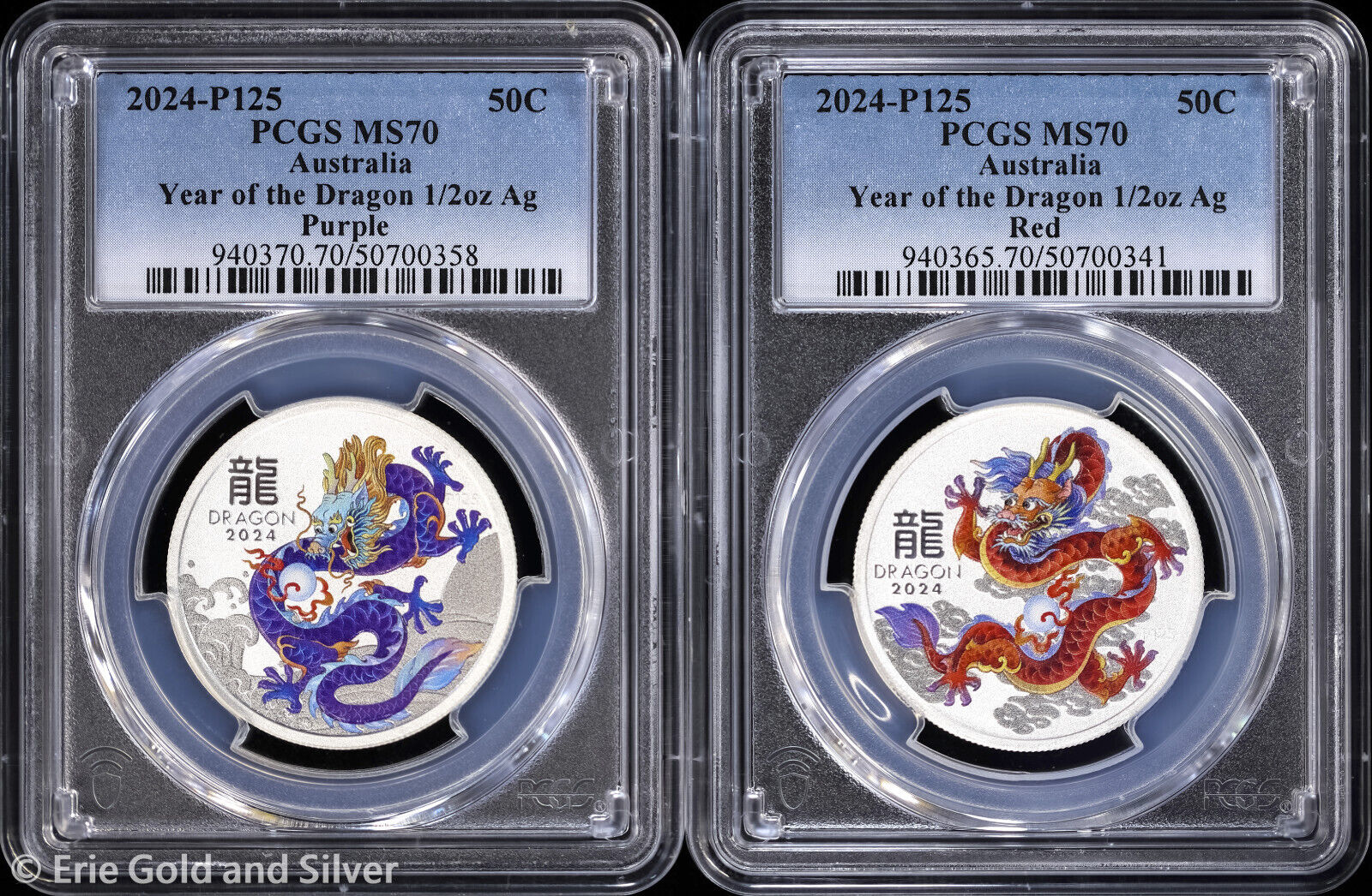 2024 50C Australia 1/2 oz Silver Year of the Dragon 8-Coin Set PCGS MS 70