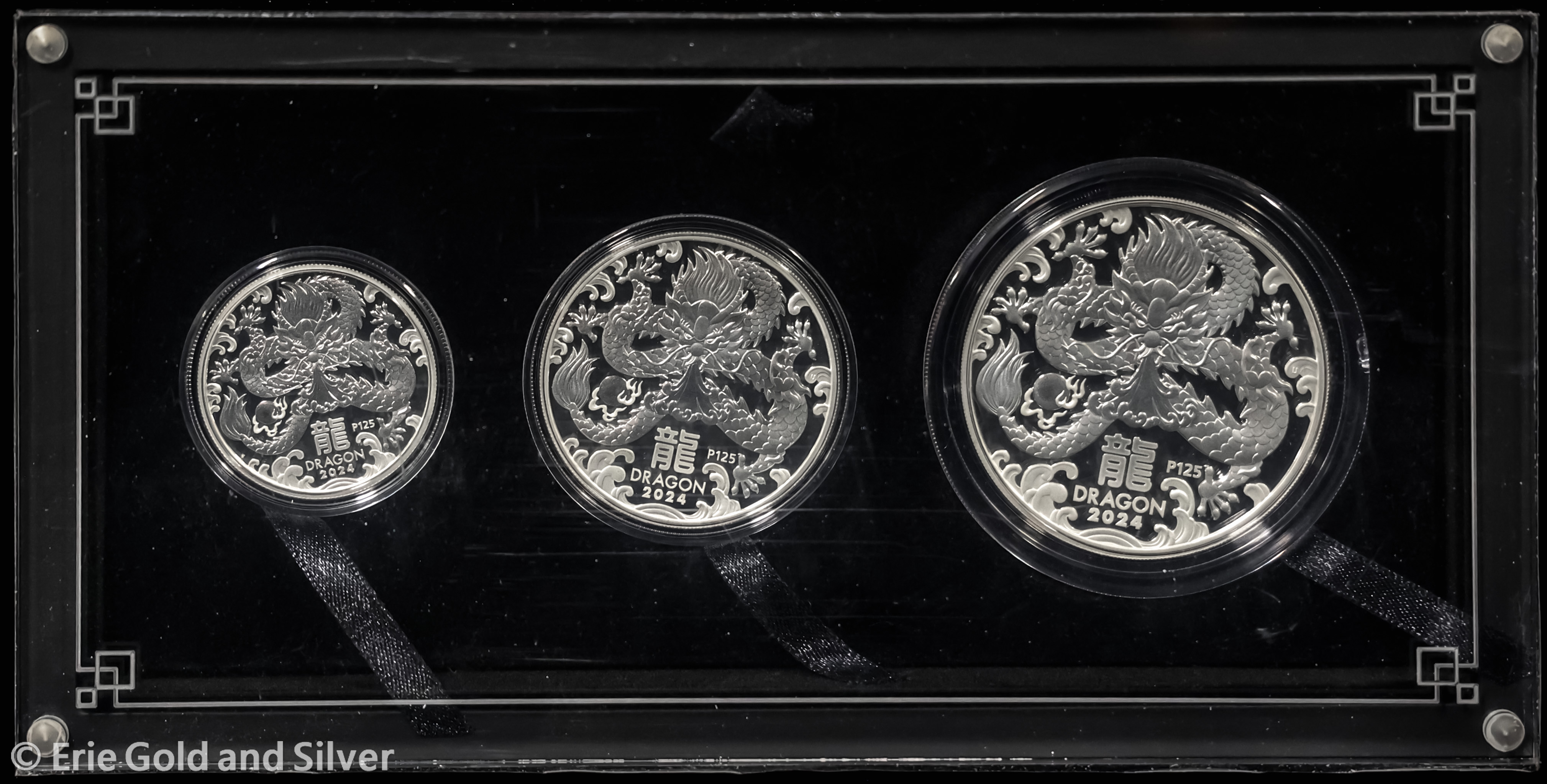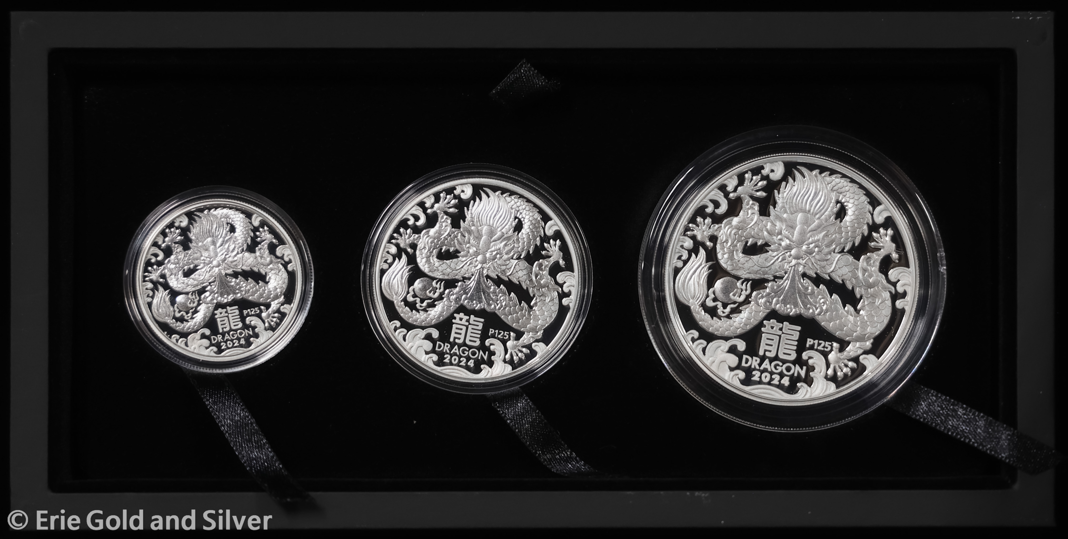 2024 Australia Lunar Year of the Dragon Silver Proof 3 Coin Set in OGP | ½ oz, 1 oz, 2 oz