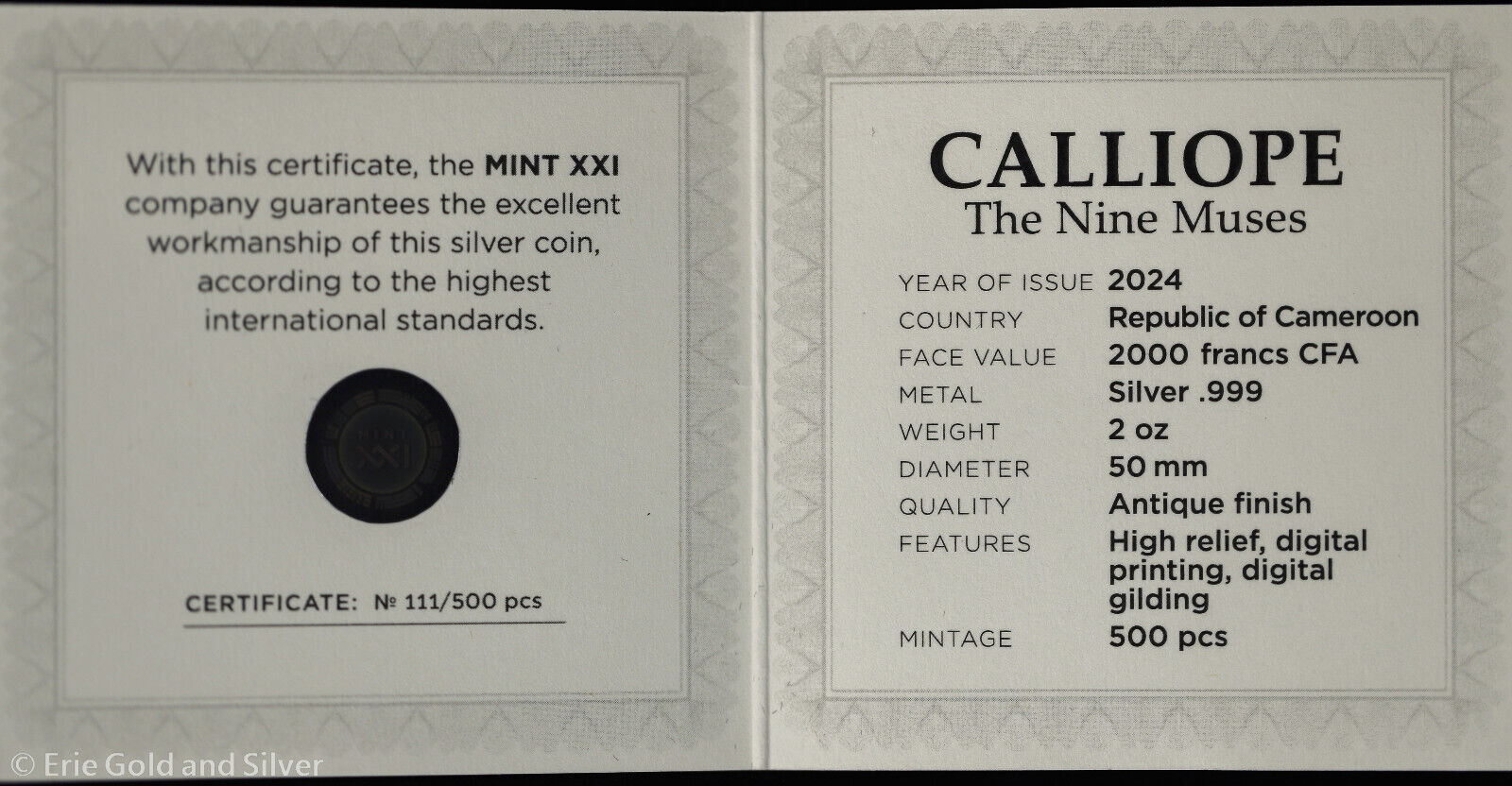 2024 Cameroon Calliope The Nine Muses 2 oz Silver Antique Finish in OGP