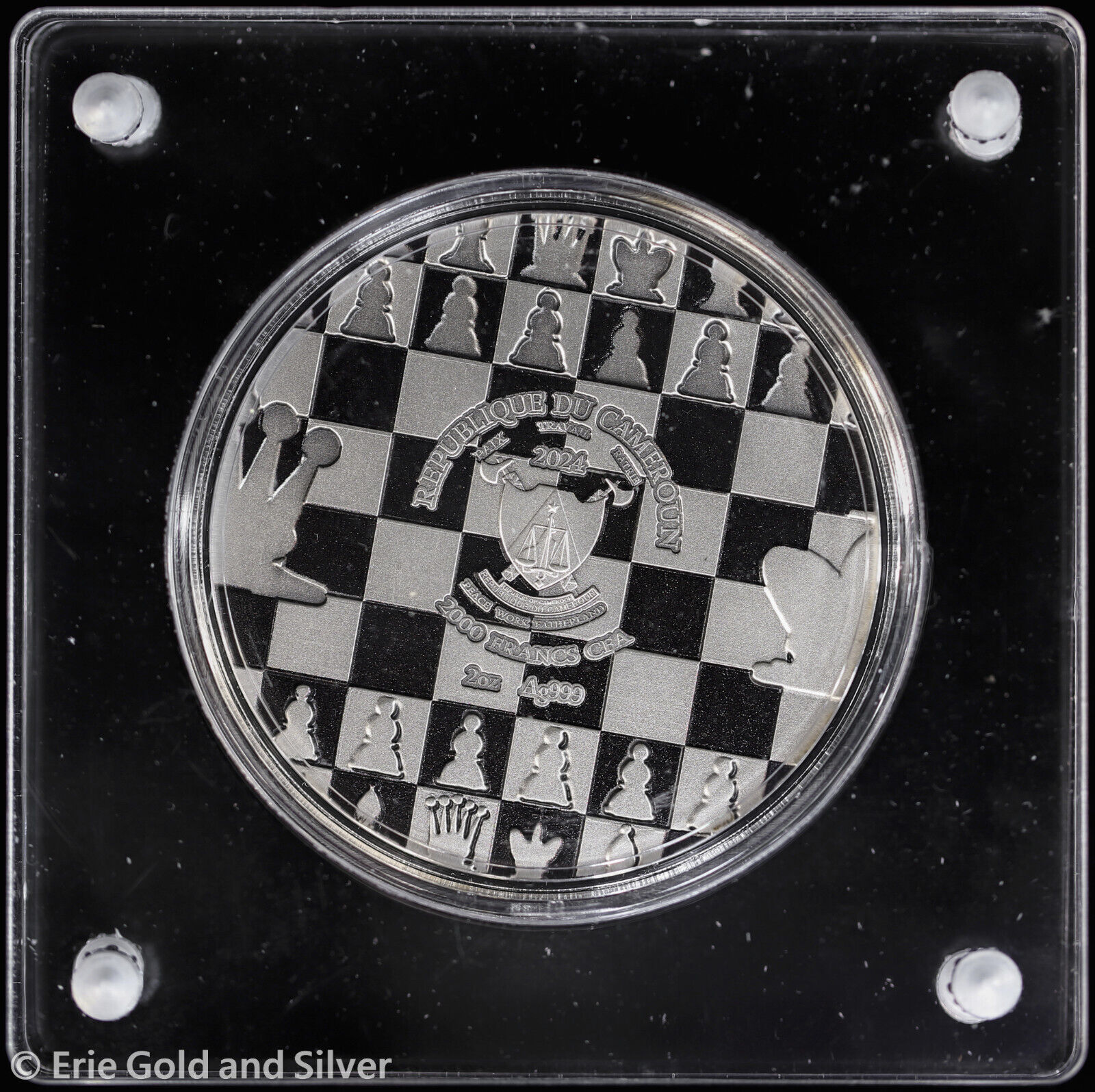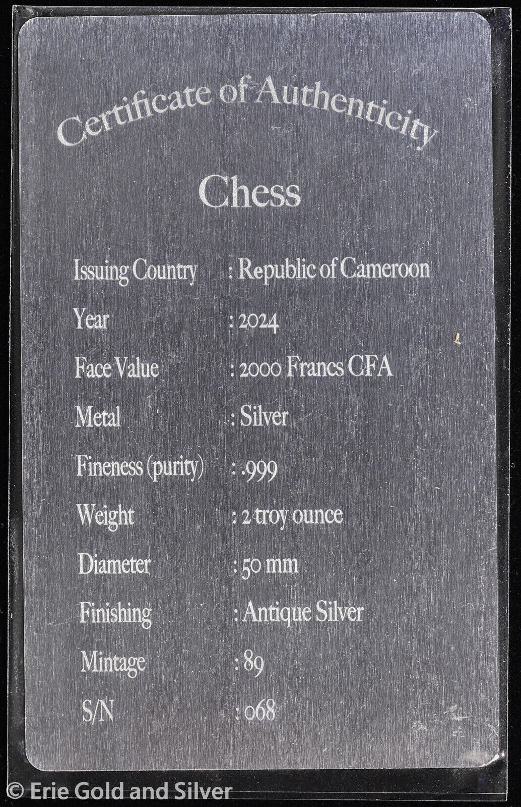 2024 Cameroon Chess 2 oz Silver Antiqued Coin in OGP