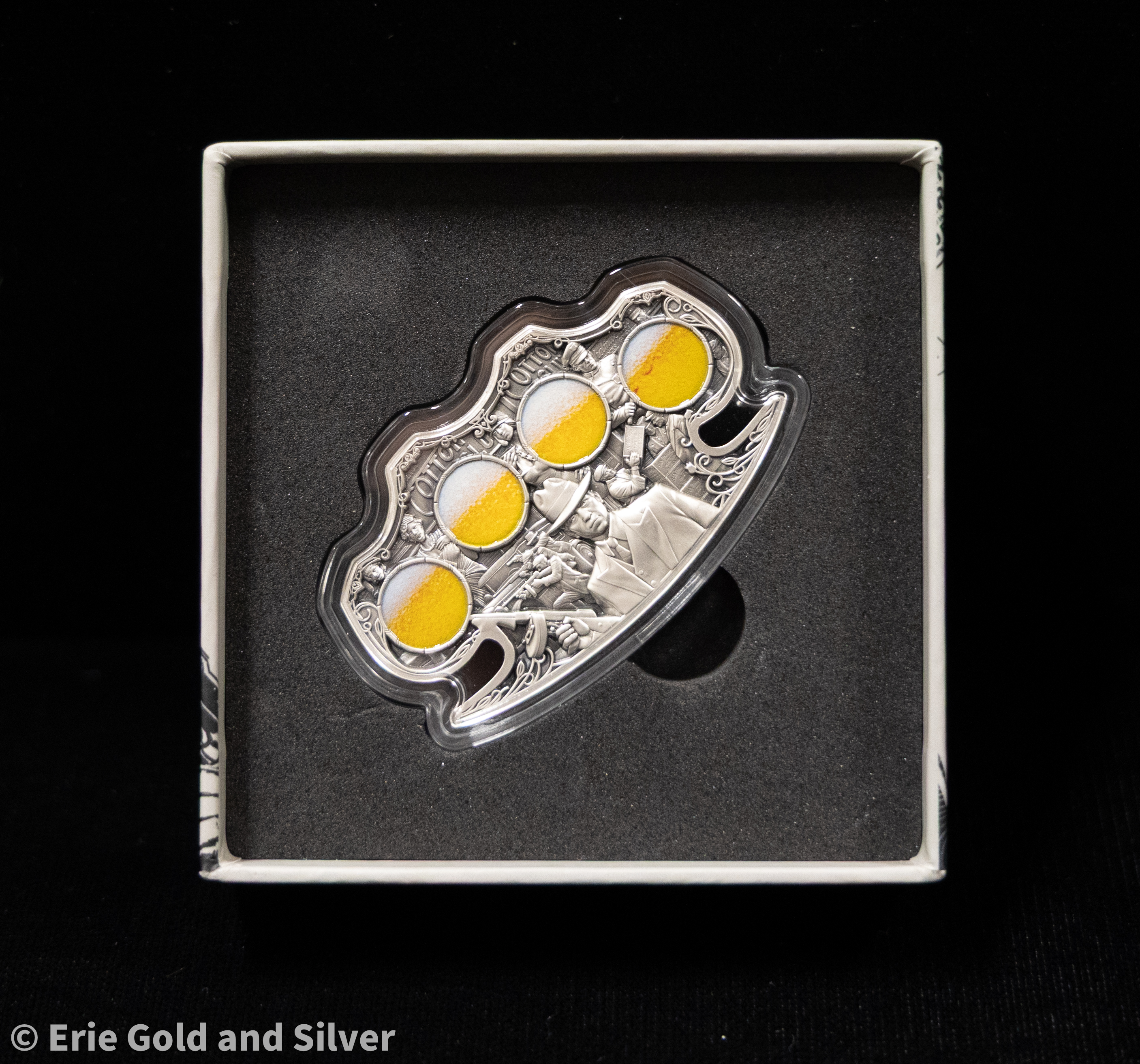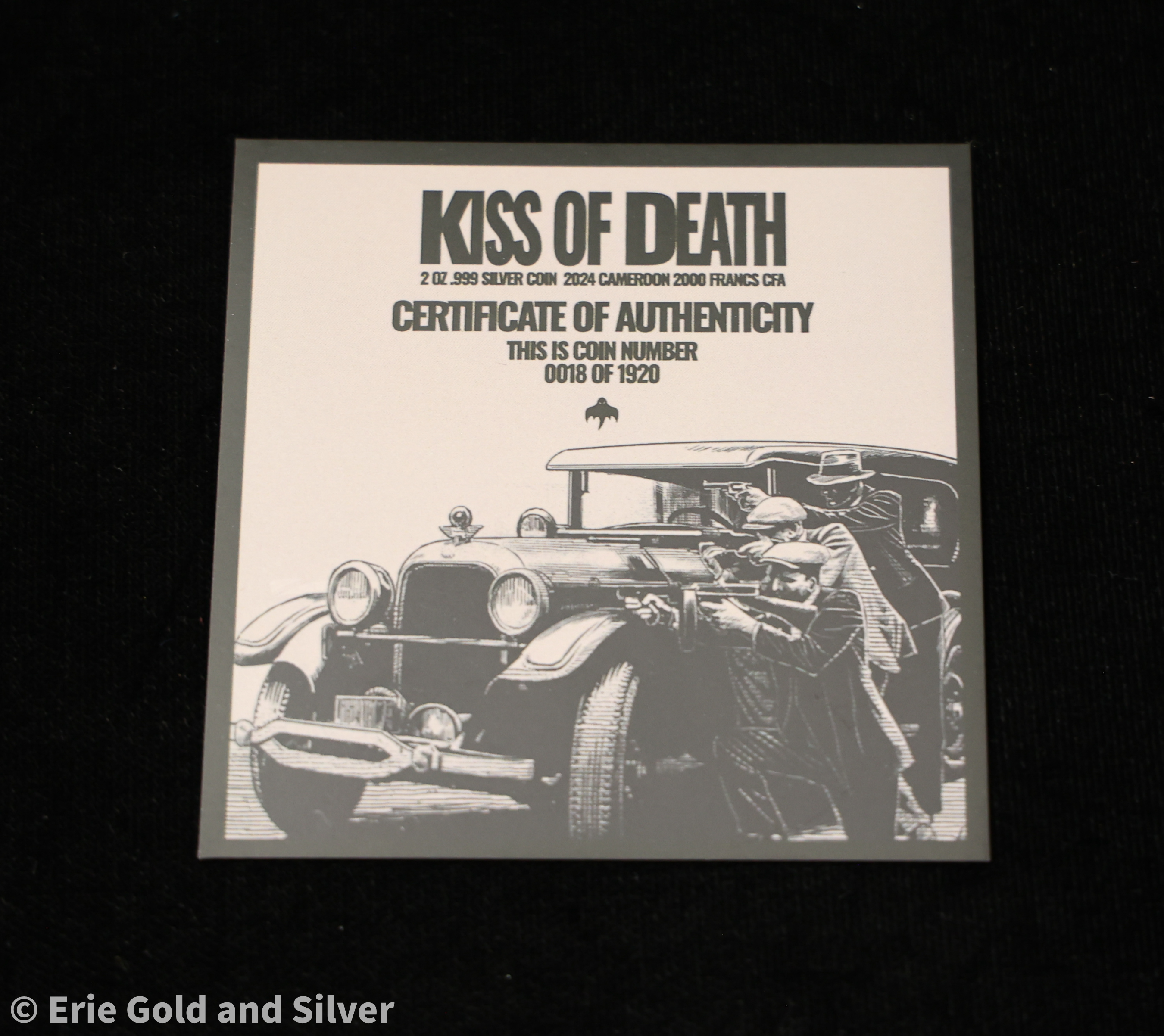 Darkly elegant and richly detailed, the 2024 Kiss of Death coin from Cameroon delivers a haunting narrative in 2 oz of antiqued .999 fine silver. With its dramatic high relief design and limited mintage, this piece is a centerpiece for collectors of gothic art, macabre themes, and premium silver issues.