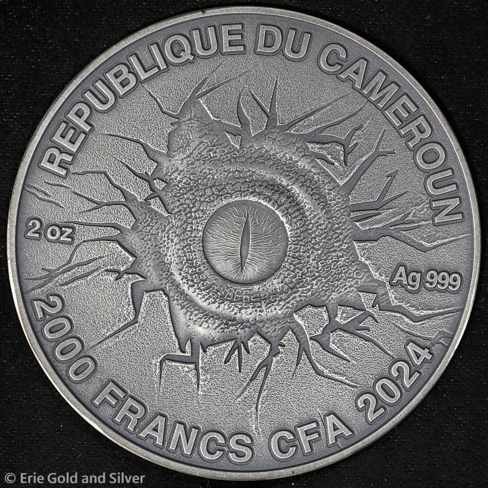 2024 Cameroon Lost World Tyrannosaurus Rex 2 oz Silver Antique Finish in OGP