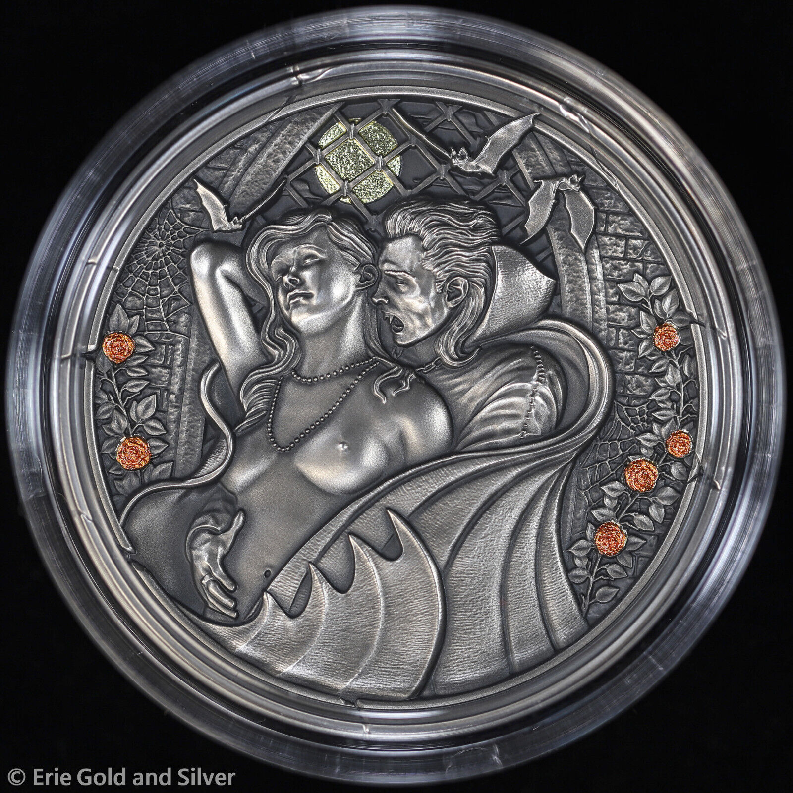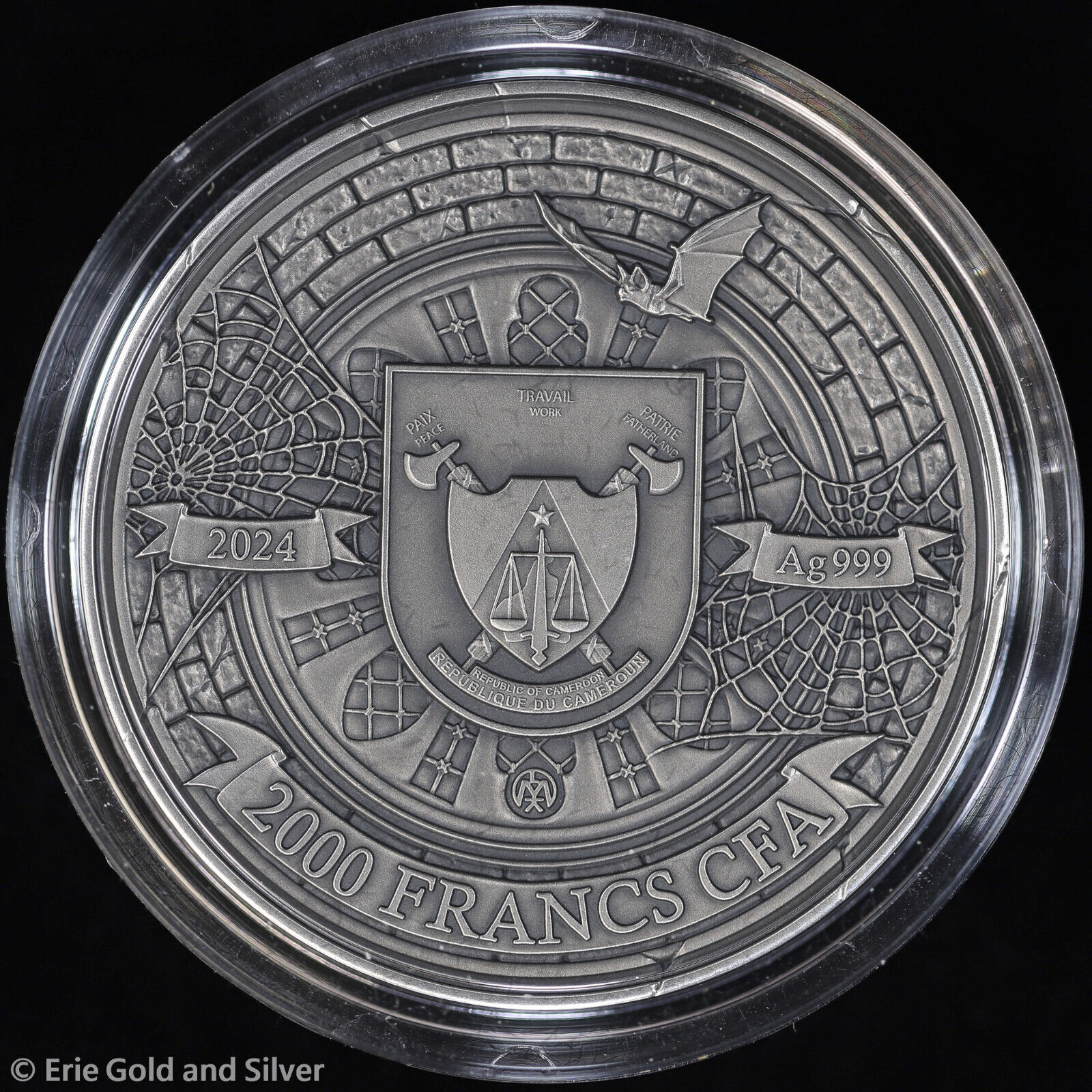 2024 Cameroon Midnight Seduction 2 oz Silver High Relief Antiqued UV Coin in OGP