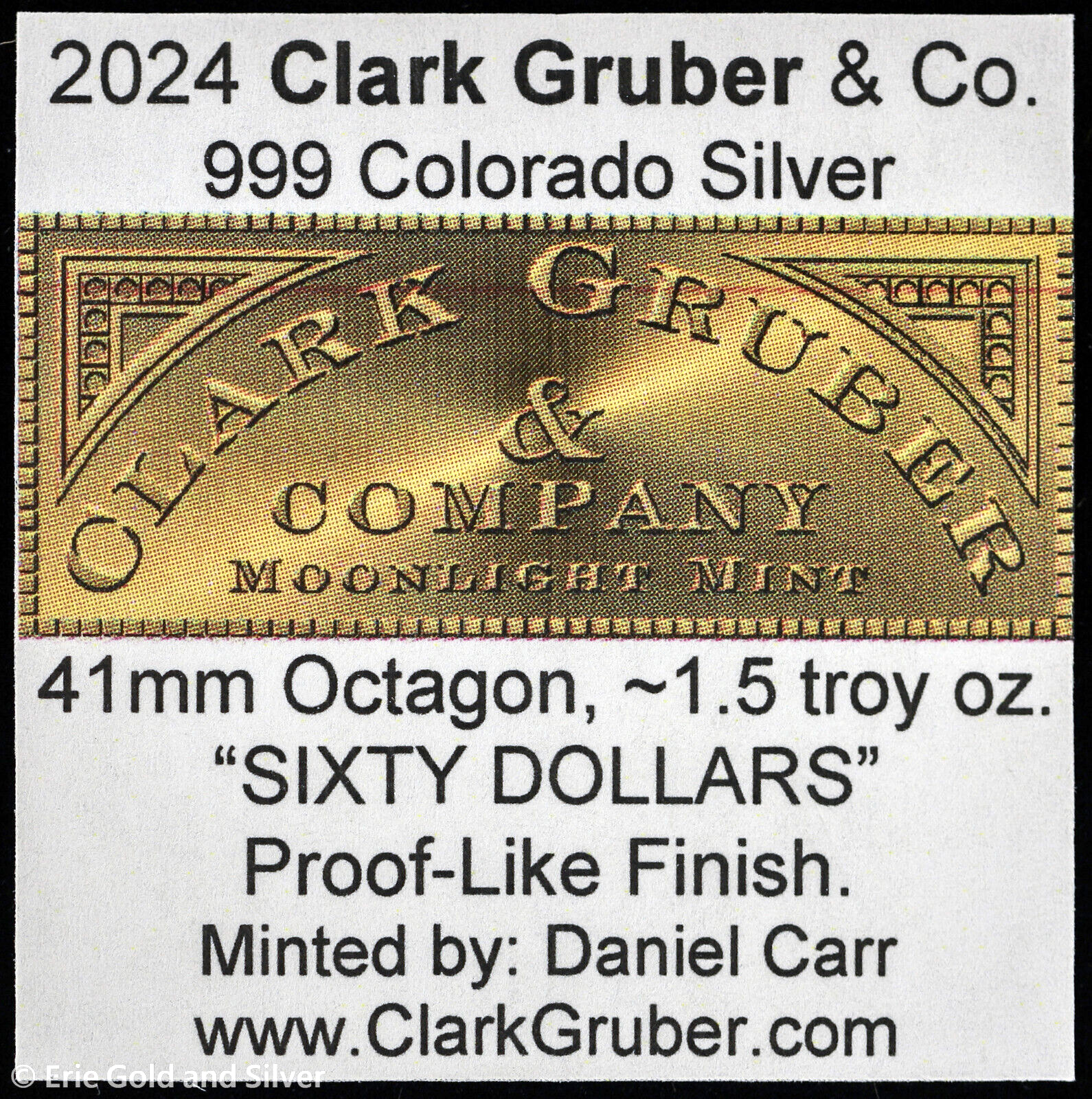 2024-D $60 Dan Carr Clark Gruber 1.5 oz Silver Token ANACS MS 70 DCAM | w/ COA