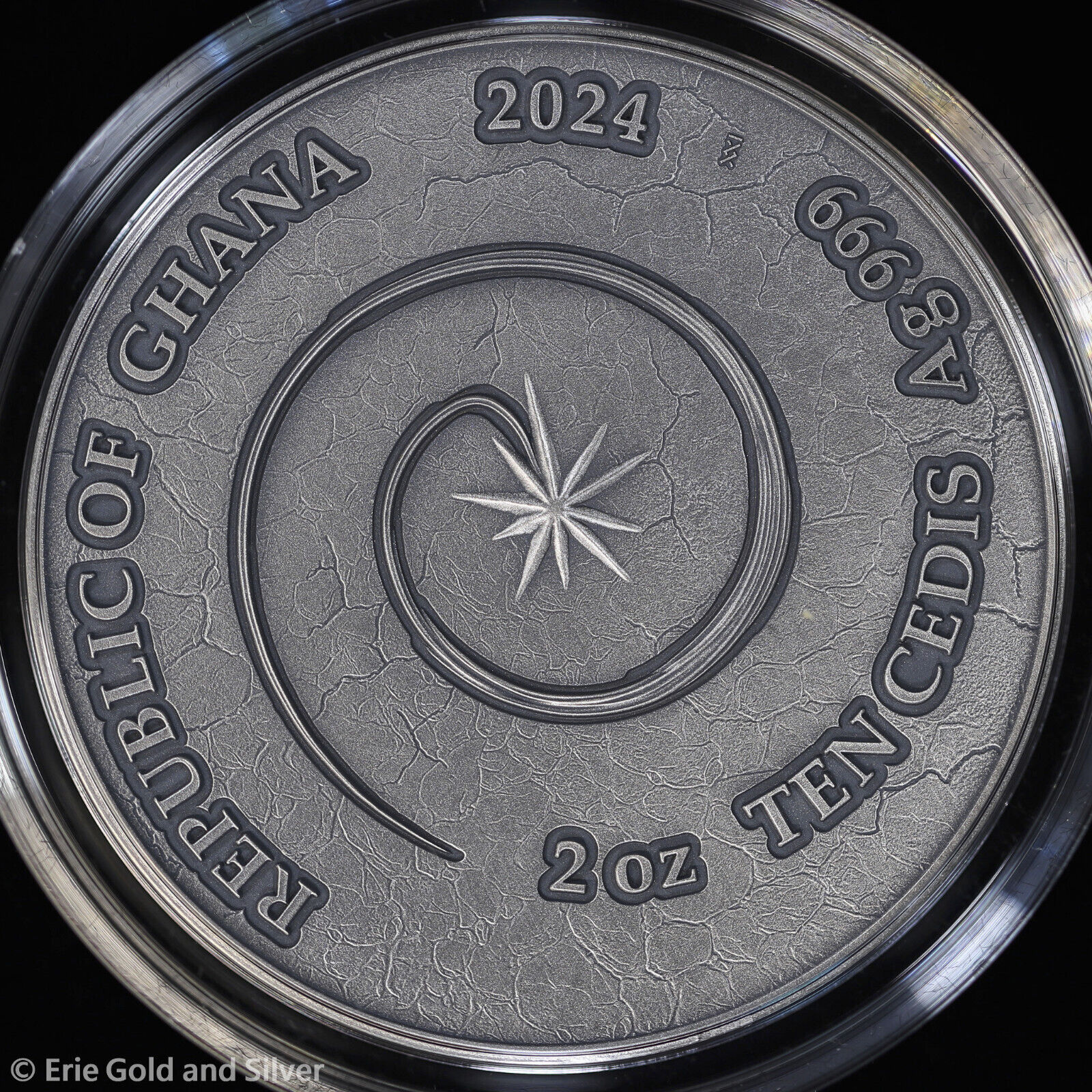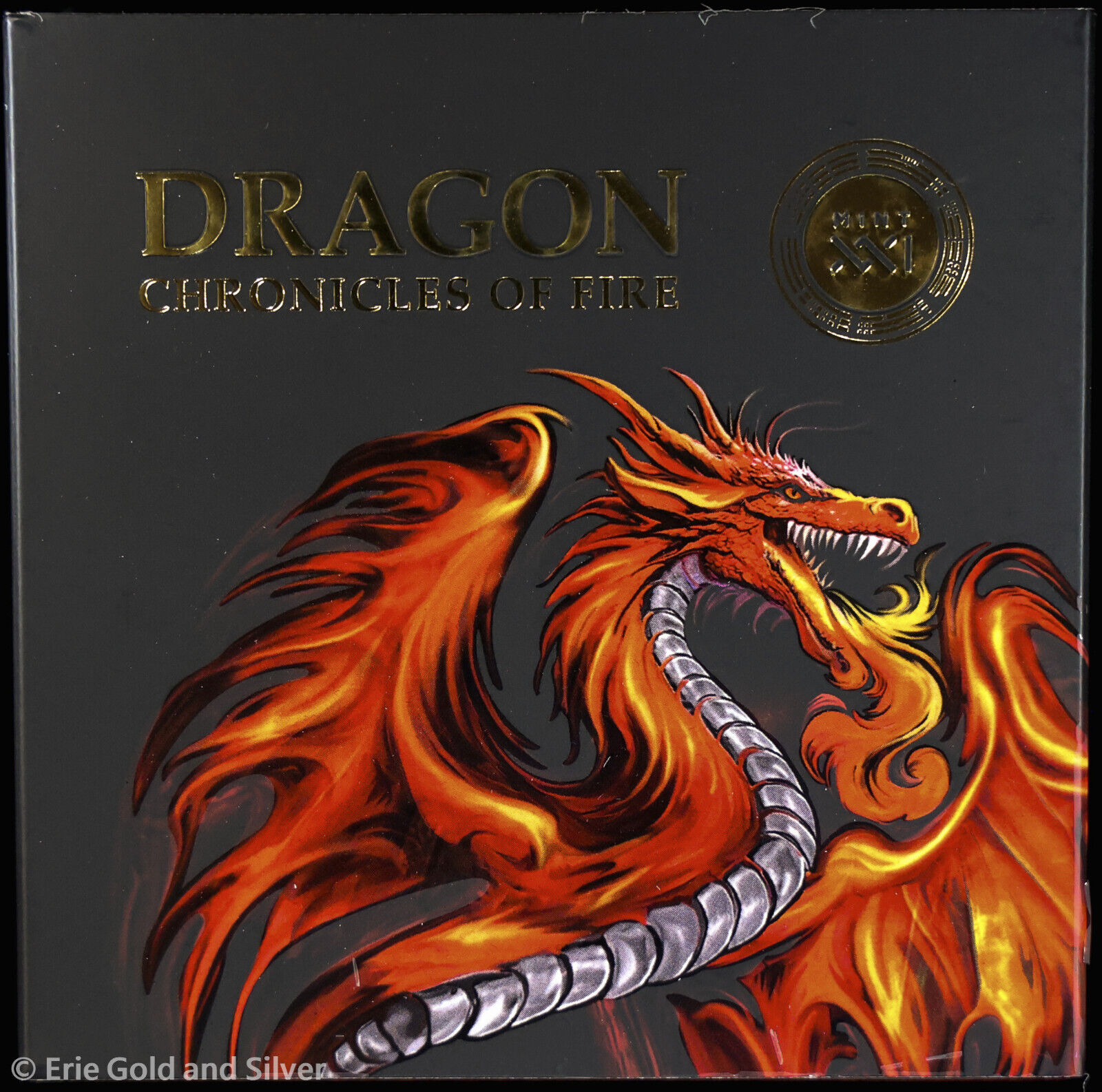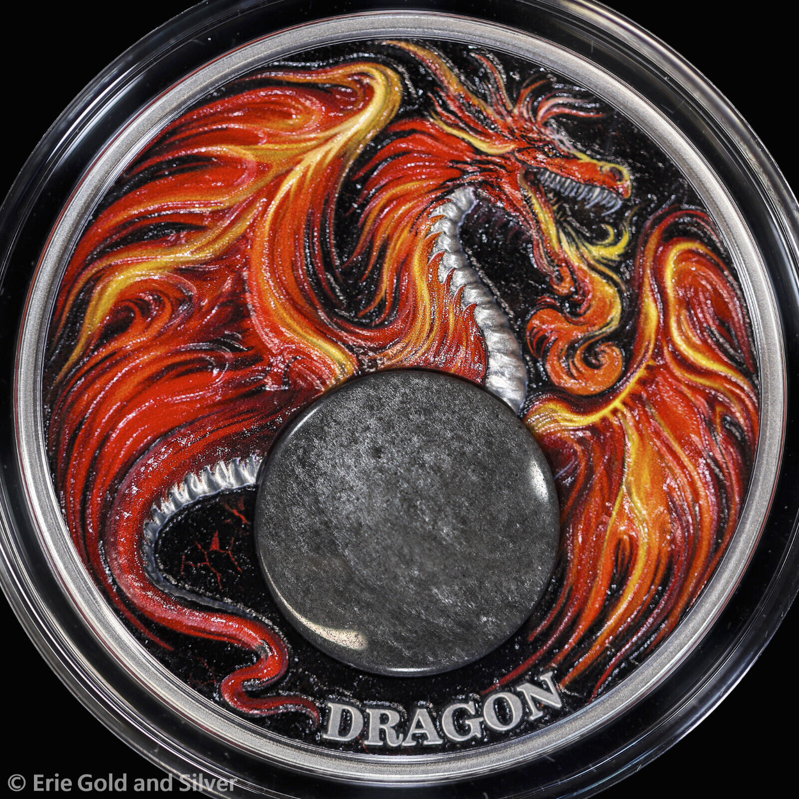 2024 Dragon Chronicles of Fire 2 oz Antiqued Silver Coin with Obsidian in OGP