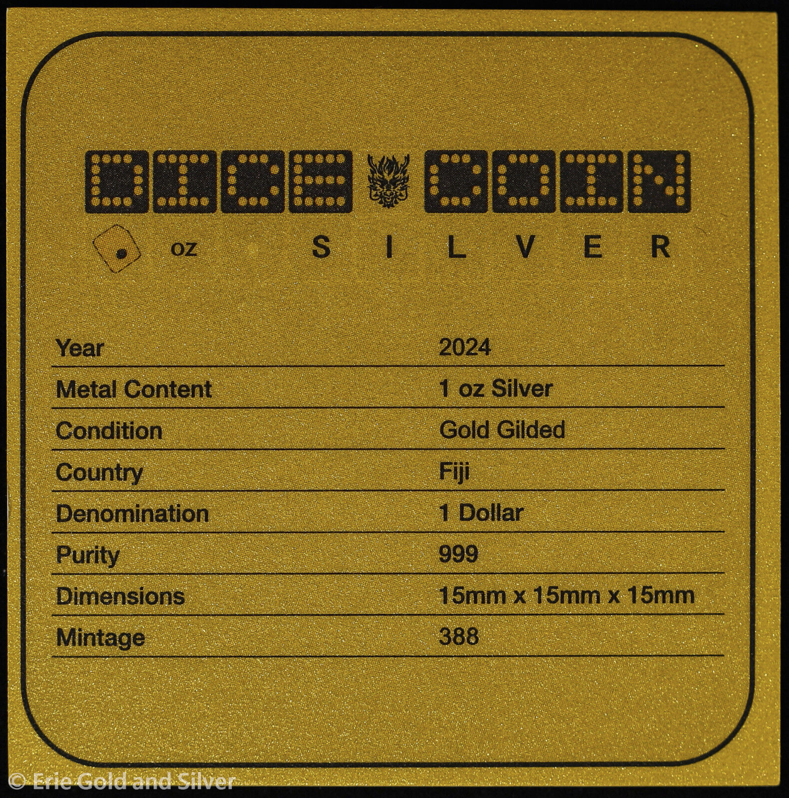 2024 Fiji Lunar Year of the Dragon Gilded 1 oz .999 Silver Dice Die Coin w/ OGP