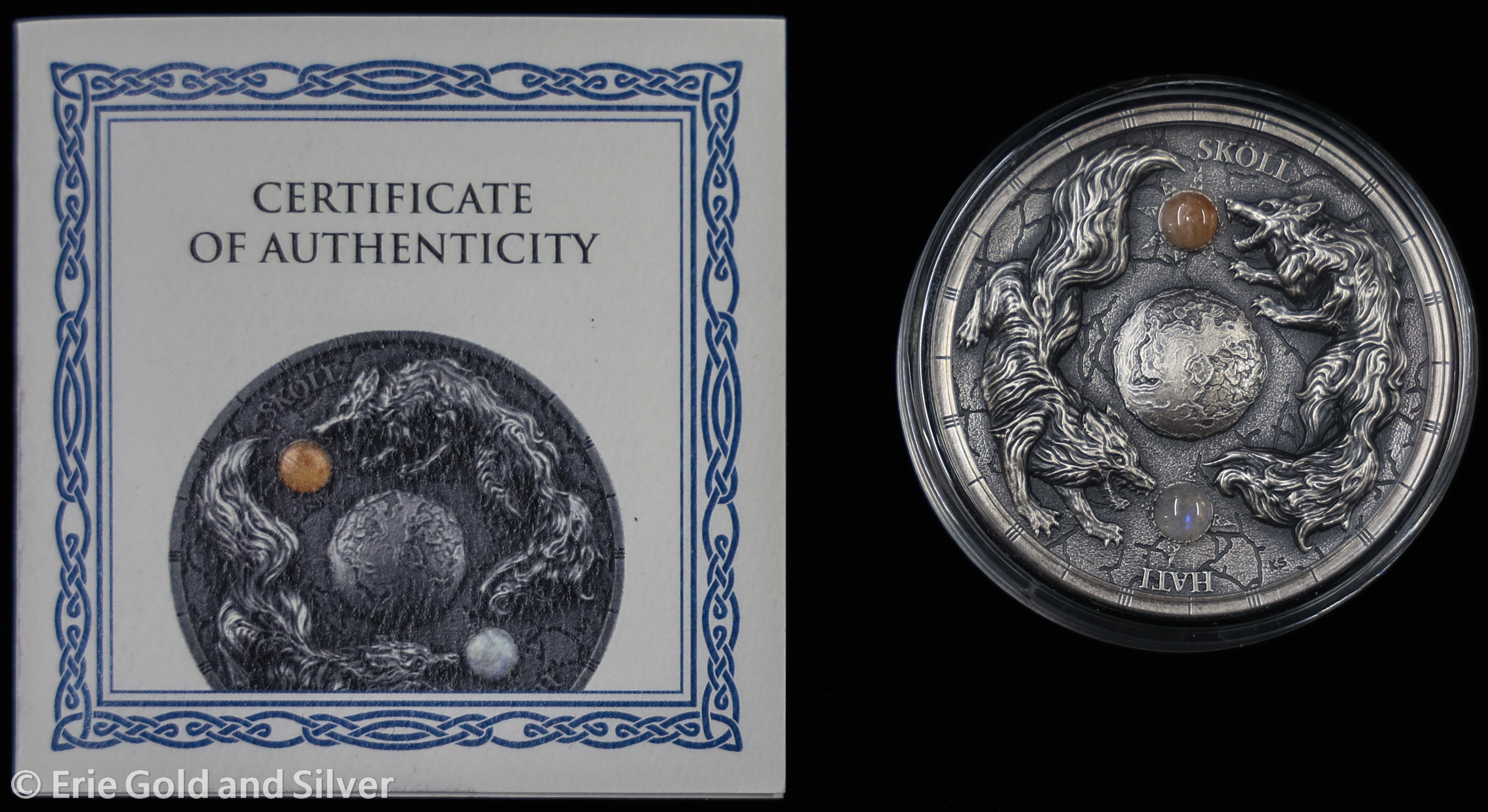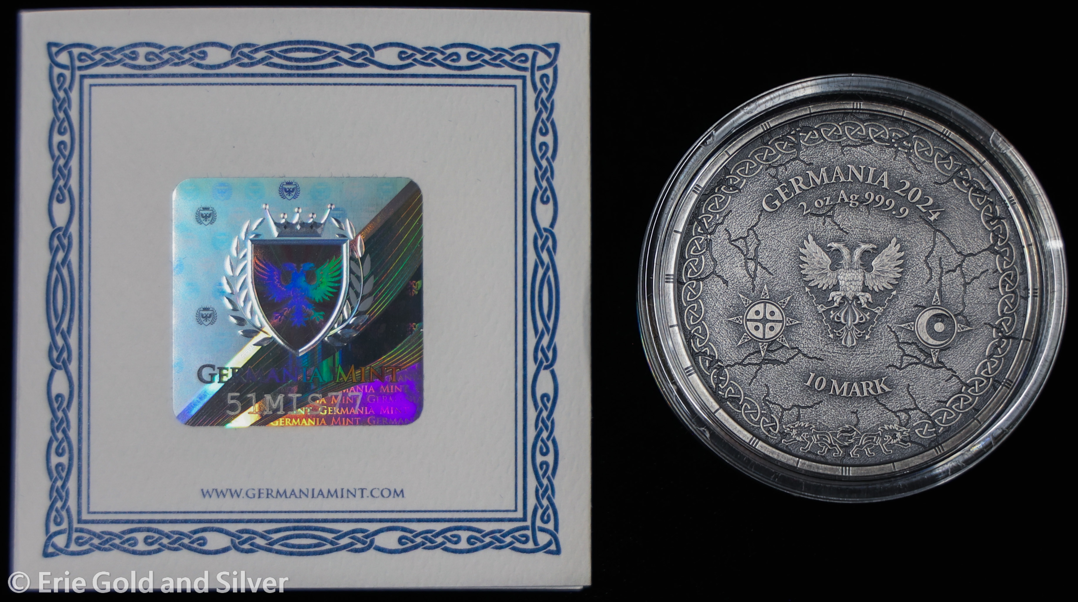 2024 Germania Mint Ragnarök: Sköll & Hati 2 oz Silver Antiqued UHR Coin in OGP