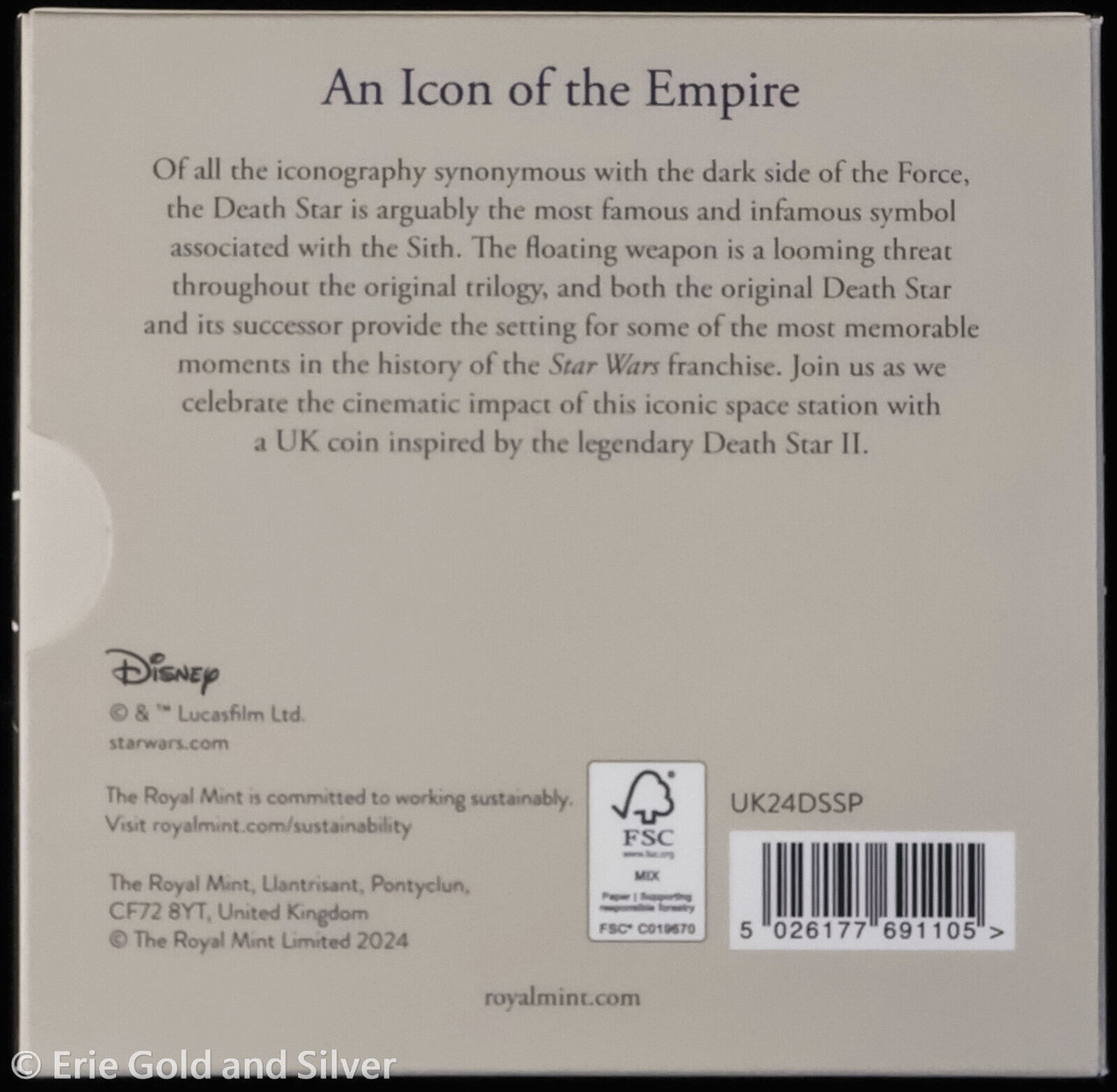 2024 Great Britain Star Wars Death Star 1 oz Silver Proof Coin in OGP