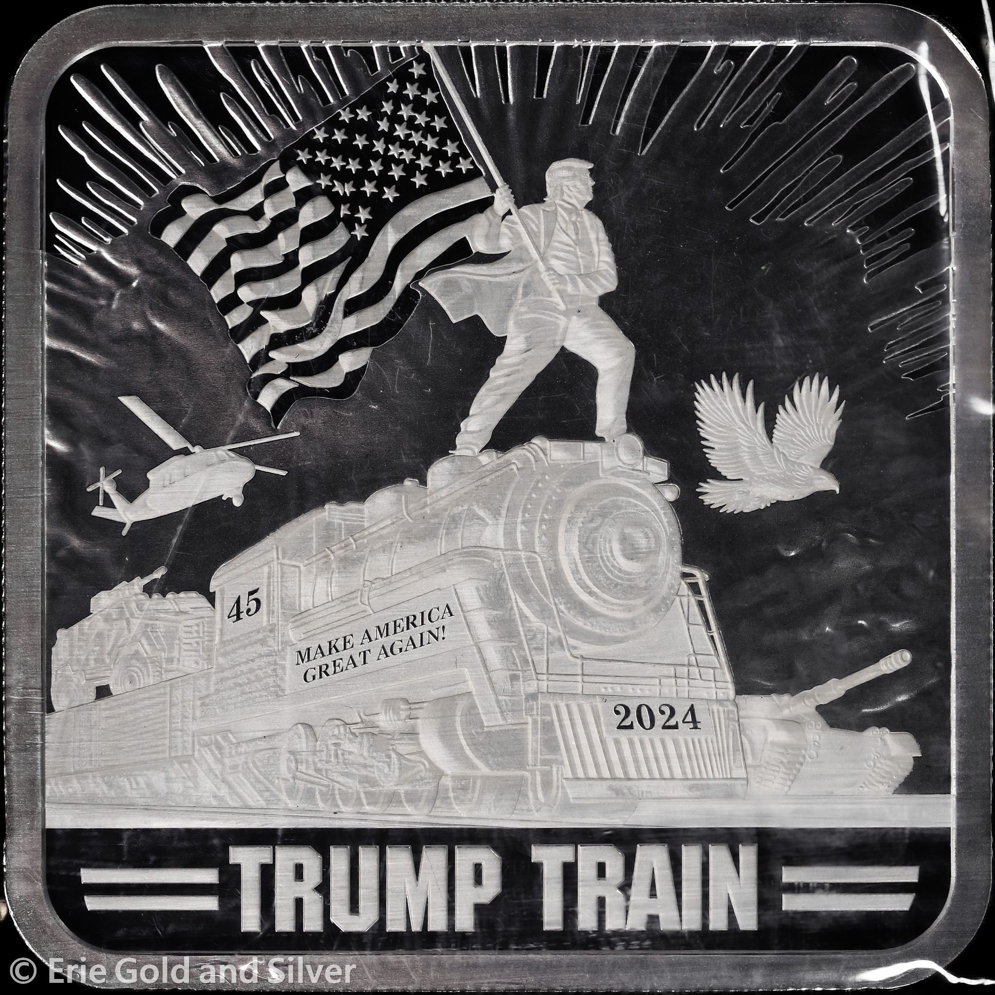 For sale is a 2024 MAGA Trump Train 24 oz Fine Silver Bar.