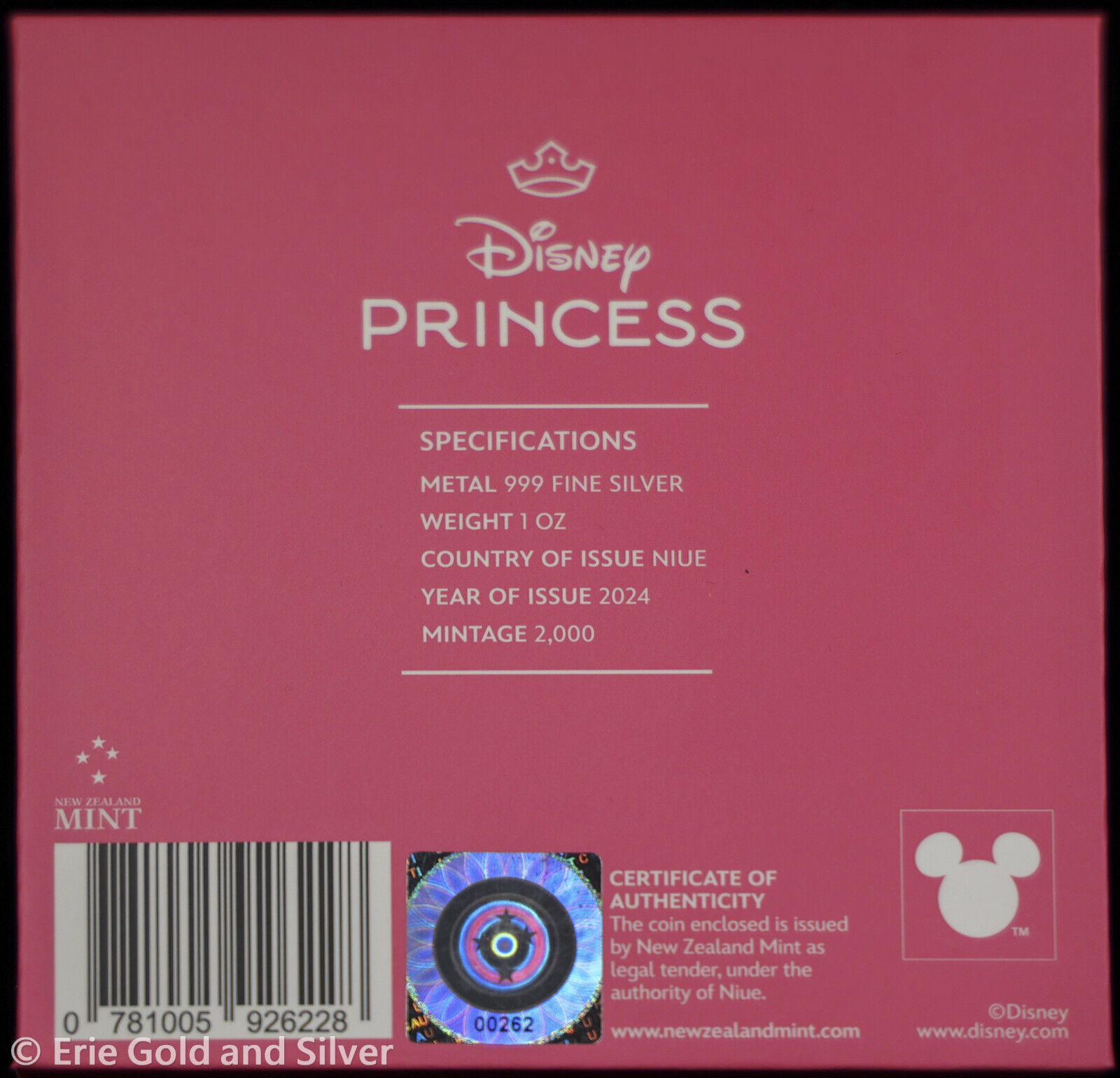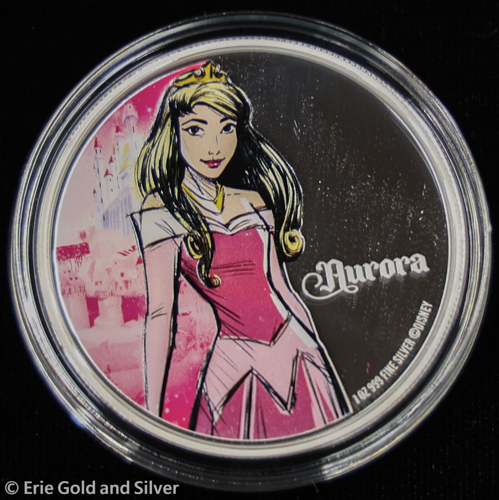 2024 Niue Disney Princess Aurora 1 oz Silver Colorized Coin in OGP