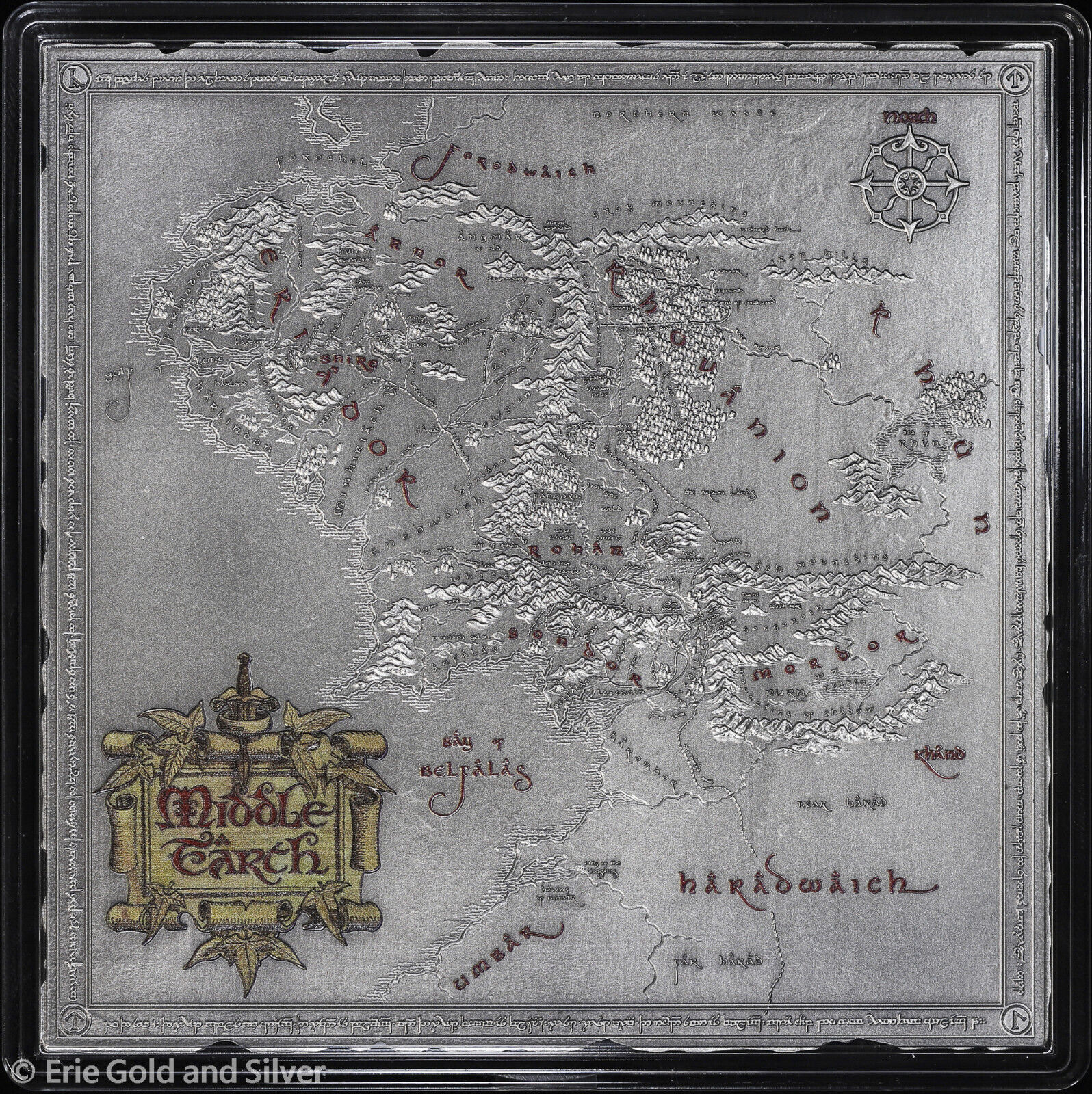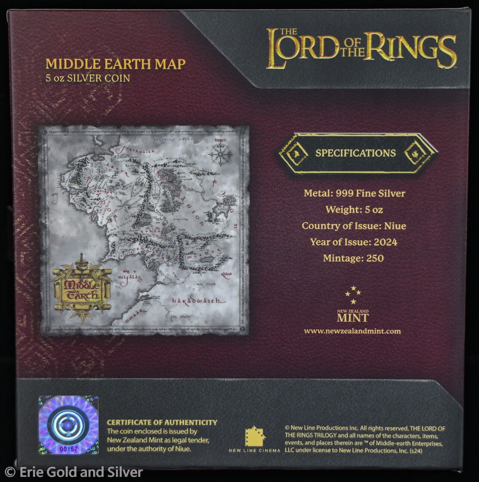 2024 Niue Lord of the Rings Middle Earth Map 5 oz Silver Antiqued Coin in OGP