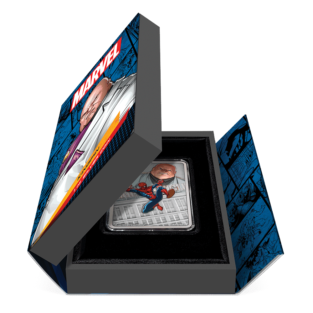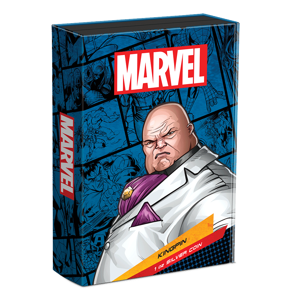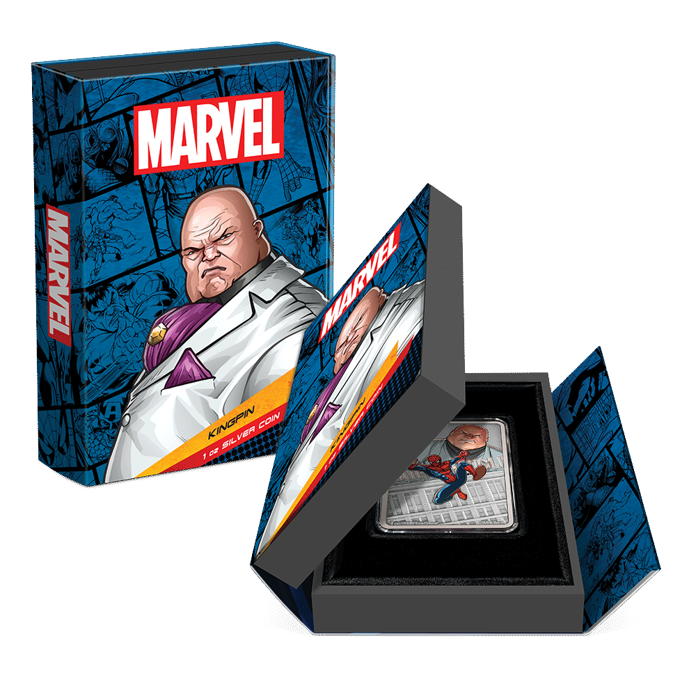 Issued by Niue in 2024, this Marvel Spider-Man Villains – Kingpin coin contains 1 oz of fine silver and spotlights one of Spider-Man’s most formidable adversaries. A compelling addition for collectors of Marvel Villains releases, Spider-Man–themed silver, and modern licensed coins.