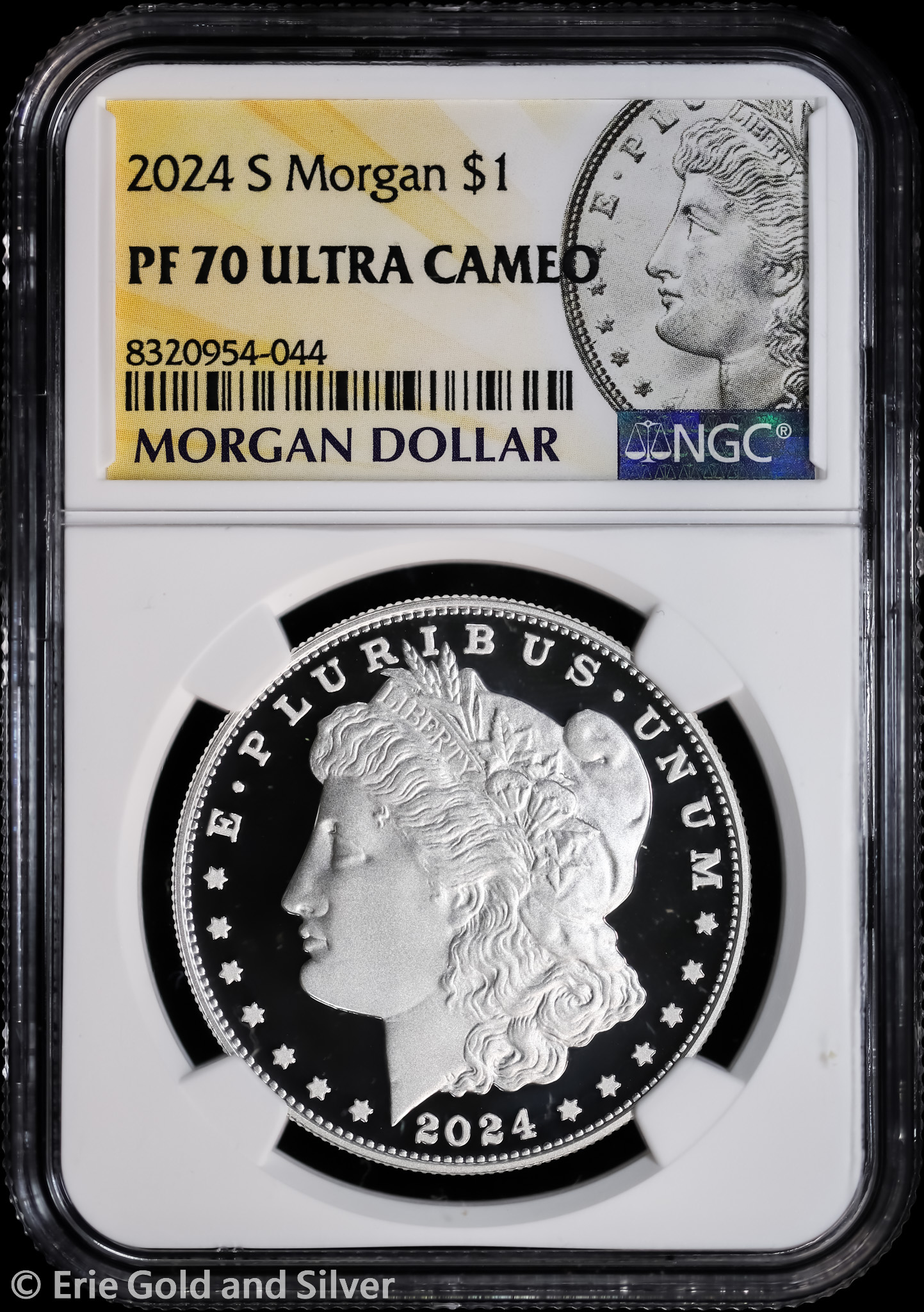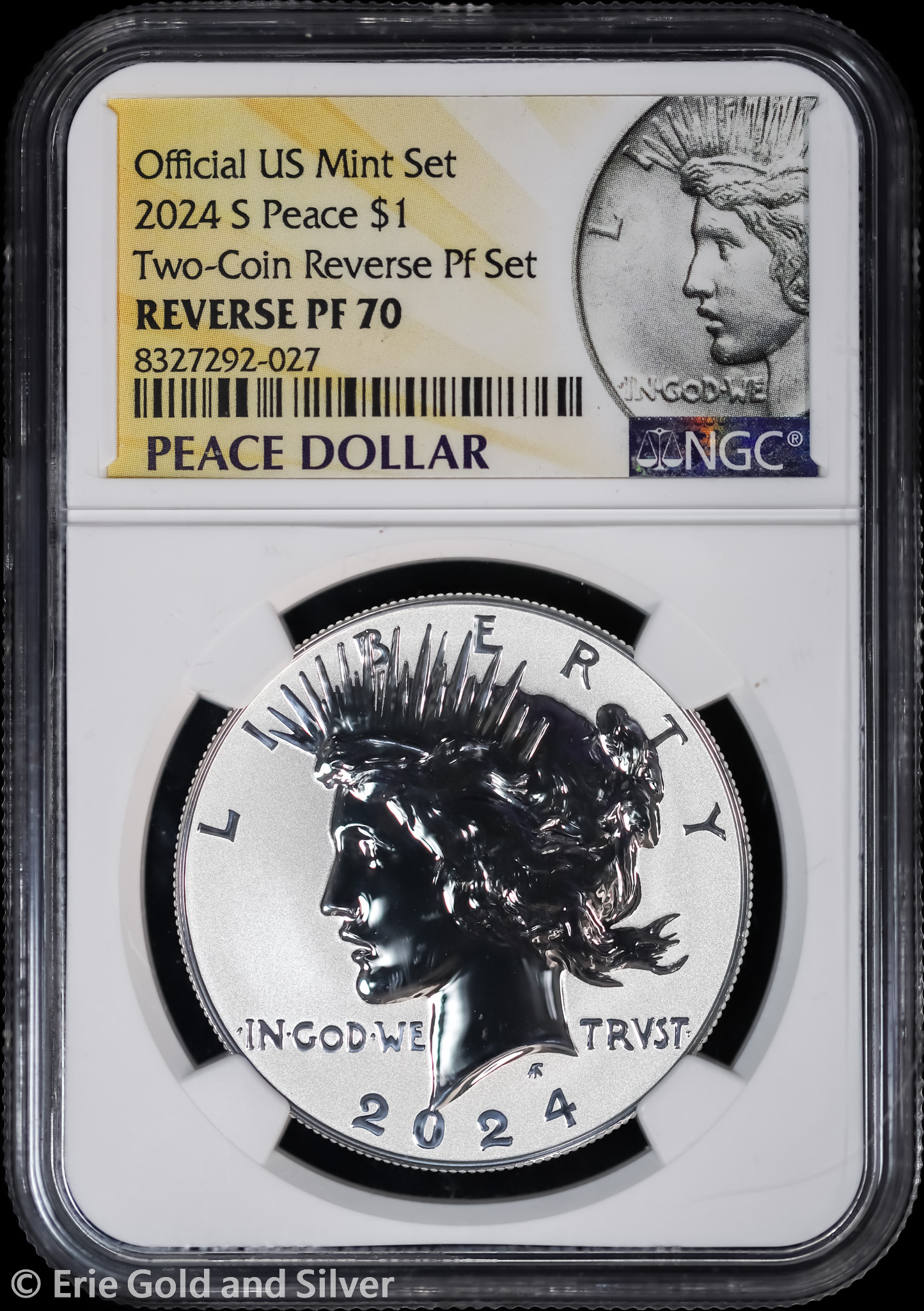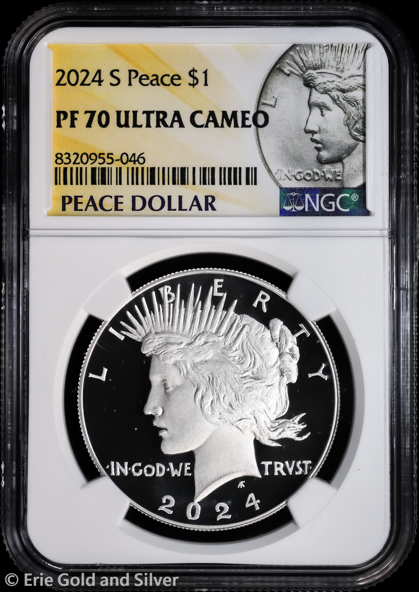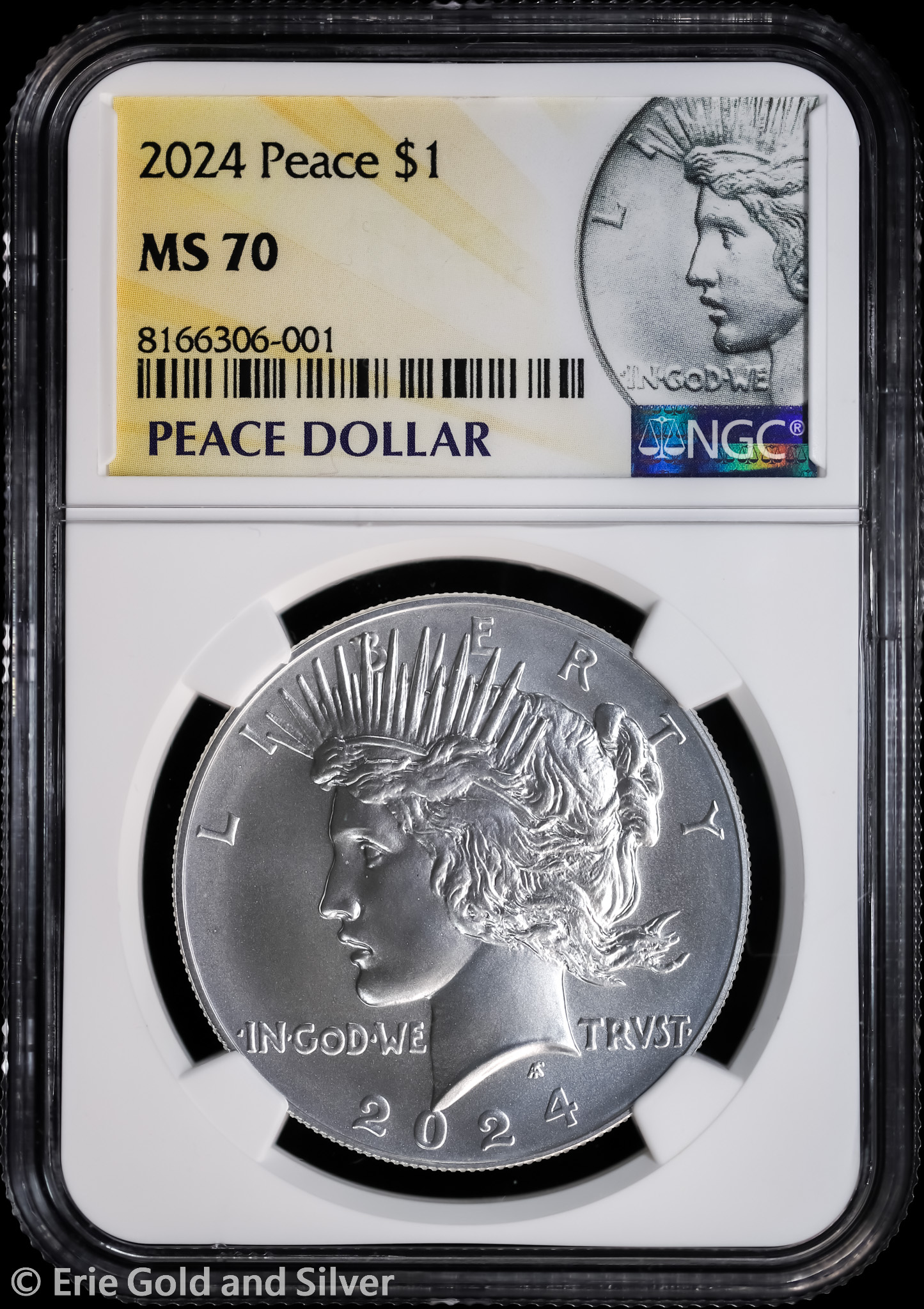 For sale is a 2024 P & S Morgan & Peace Dollar Six Coin Set. Certified / graded by NGC at MS 70 & PR 70.