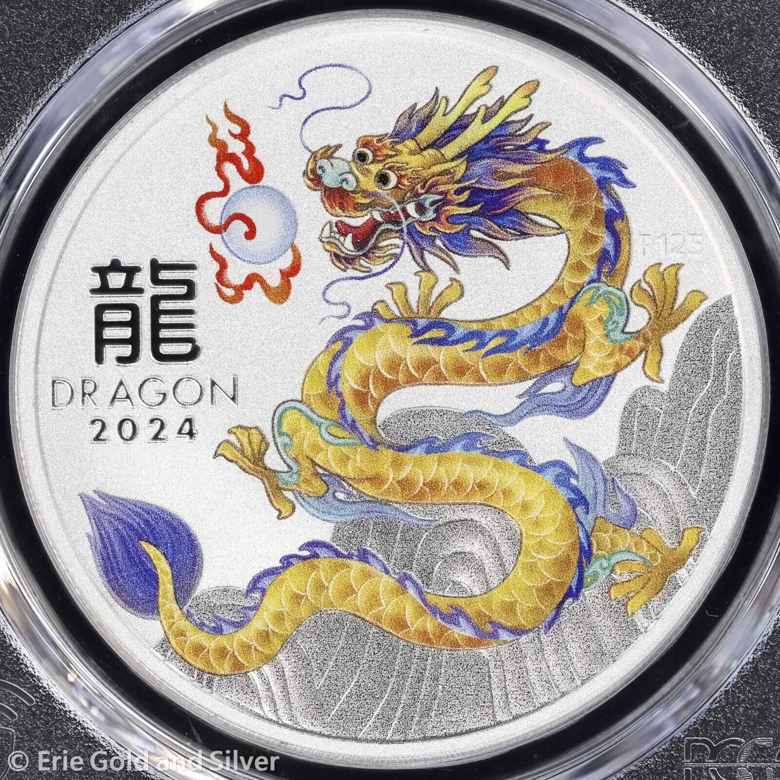 2024-P125 $1 Australia 1 oz Silver Year of the Dragon Orange PCGS MS 70
