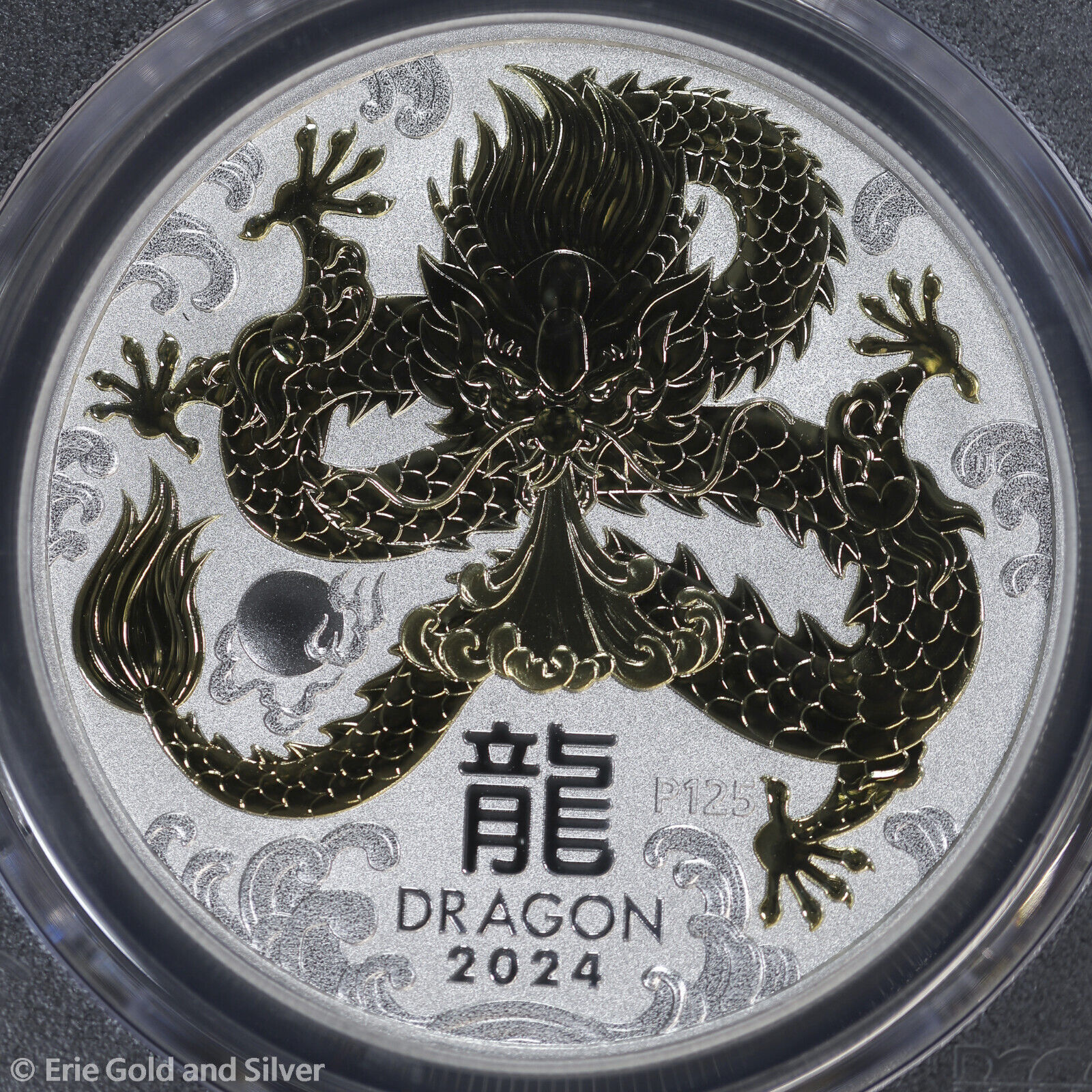 2024-P125 $1 Australia 1 oz Silver Year of the Dragon PCGS MS 70 Selective Gilt