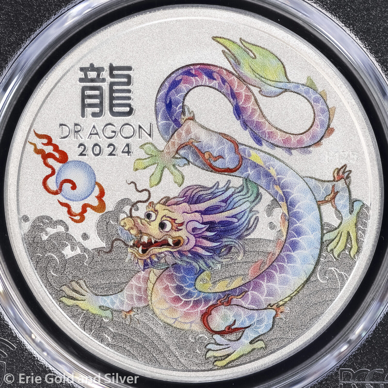 2024-P125 $1 Australia 1 oz Silver Year of the Dragon White PCGS MS 70