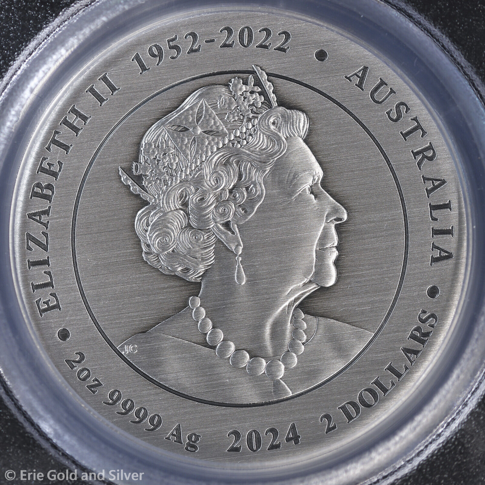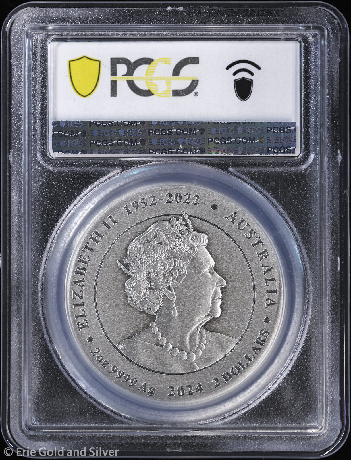 2024-P125 $2 Australia 2 oz Silver Antiqued Year of the Dragon PCGS SP 70