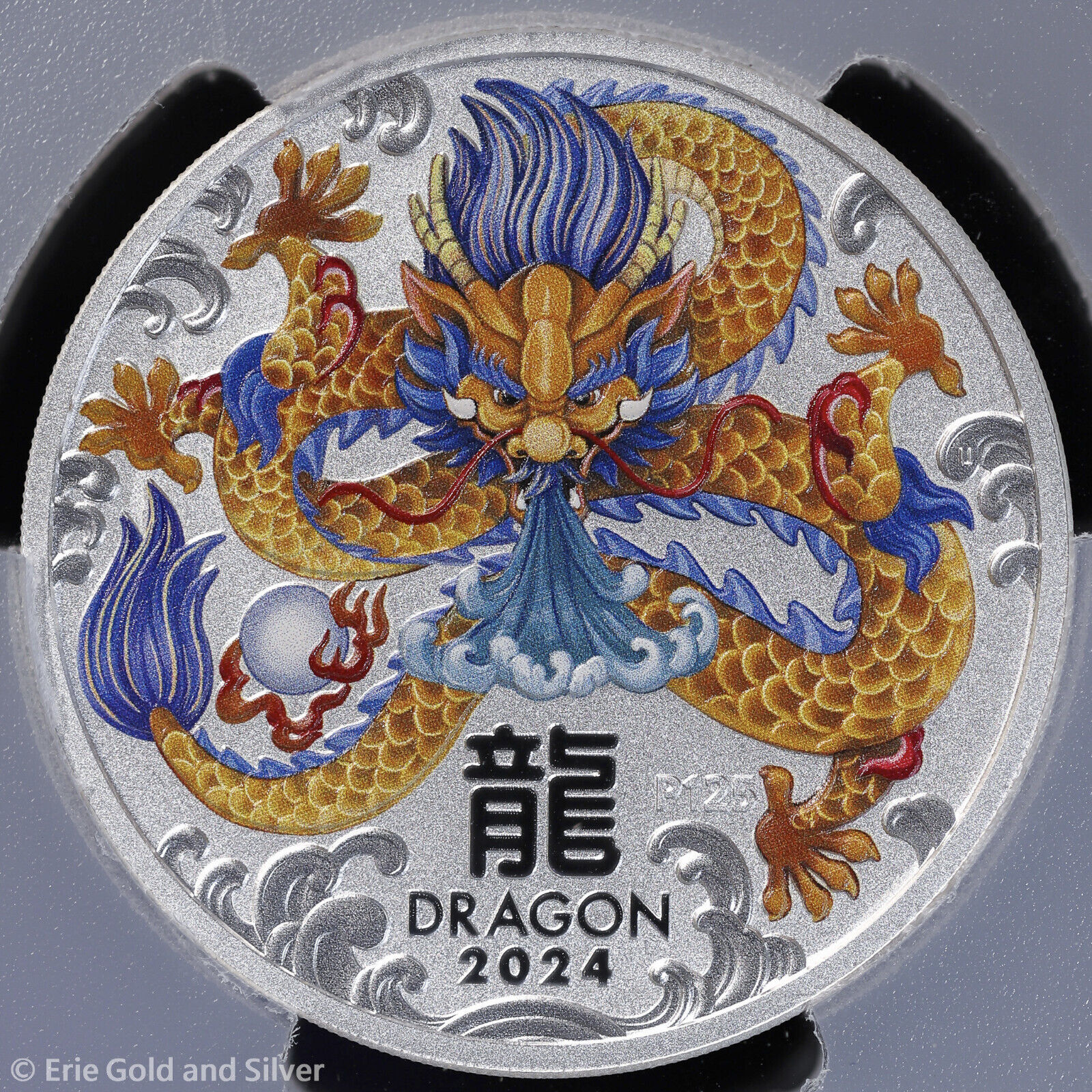 2024-P125 $2 Australia 2 oz Silver Colorized Year of the Dragon PCGS MS 70