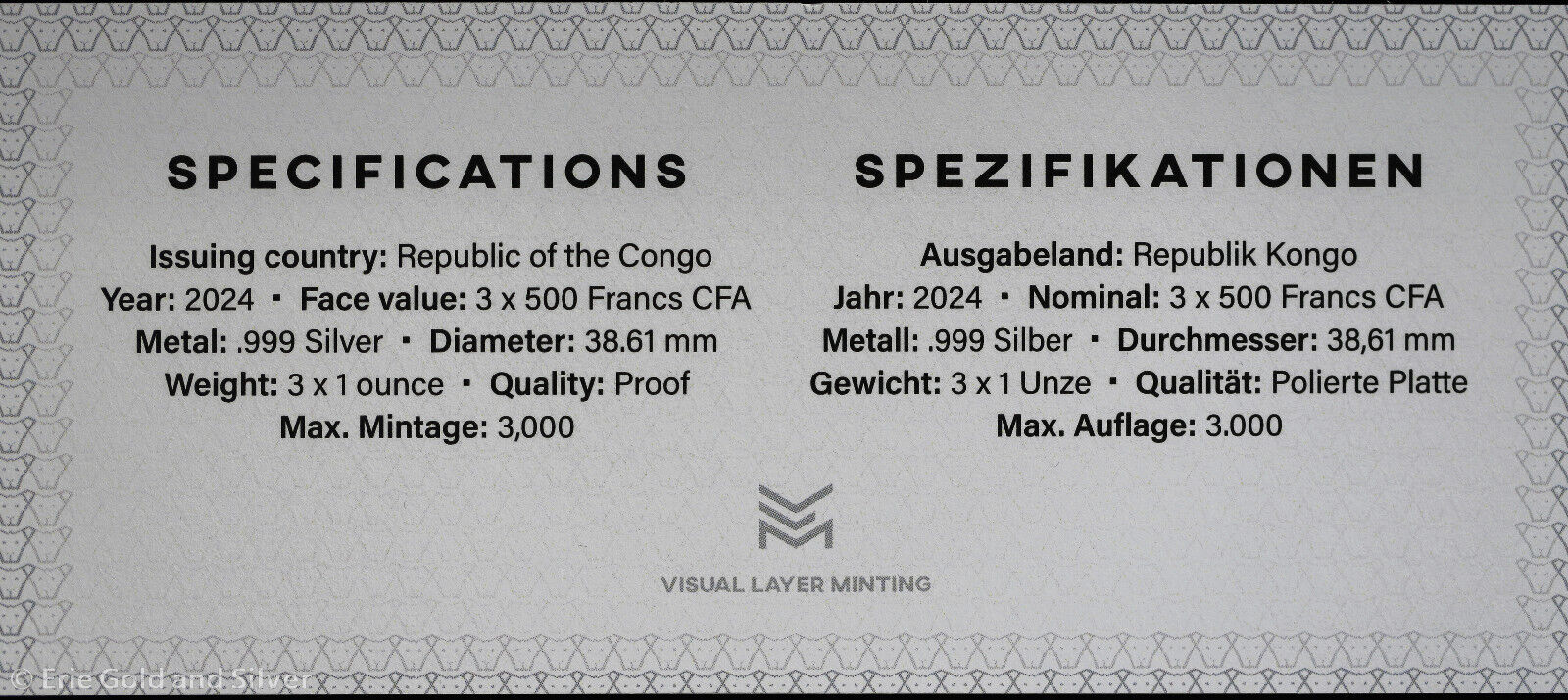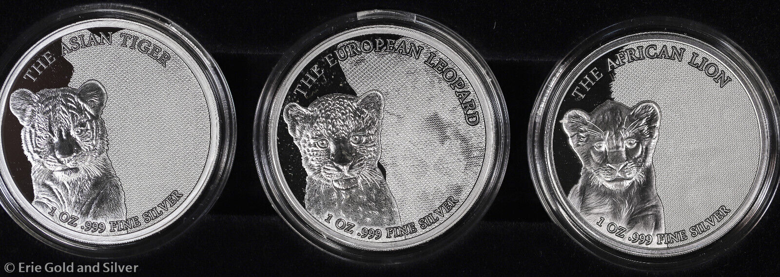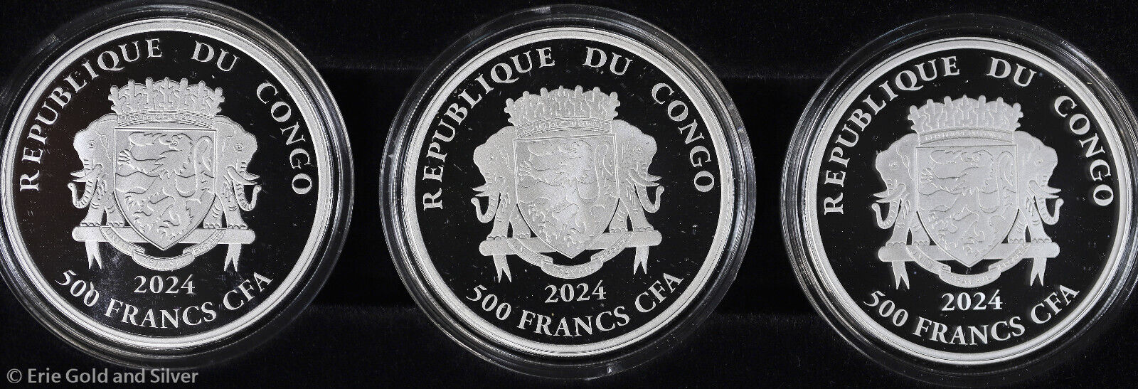 2024 Republic of the Congo 500 Francs Wildcats 3x 1 oz Silver Coin Set in OGP