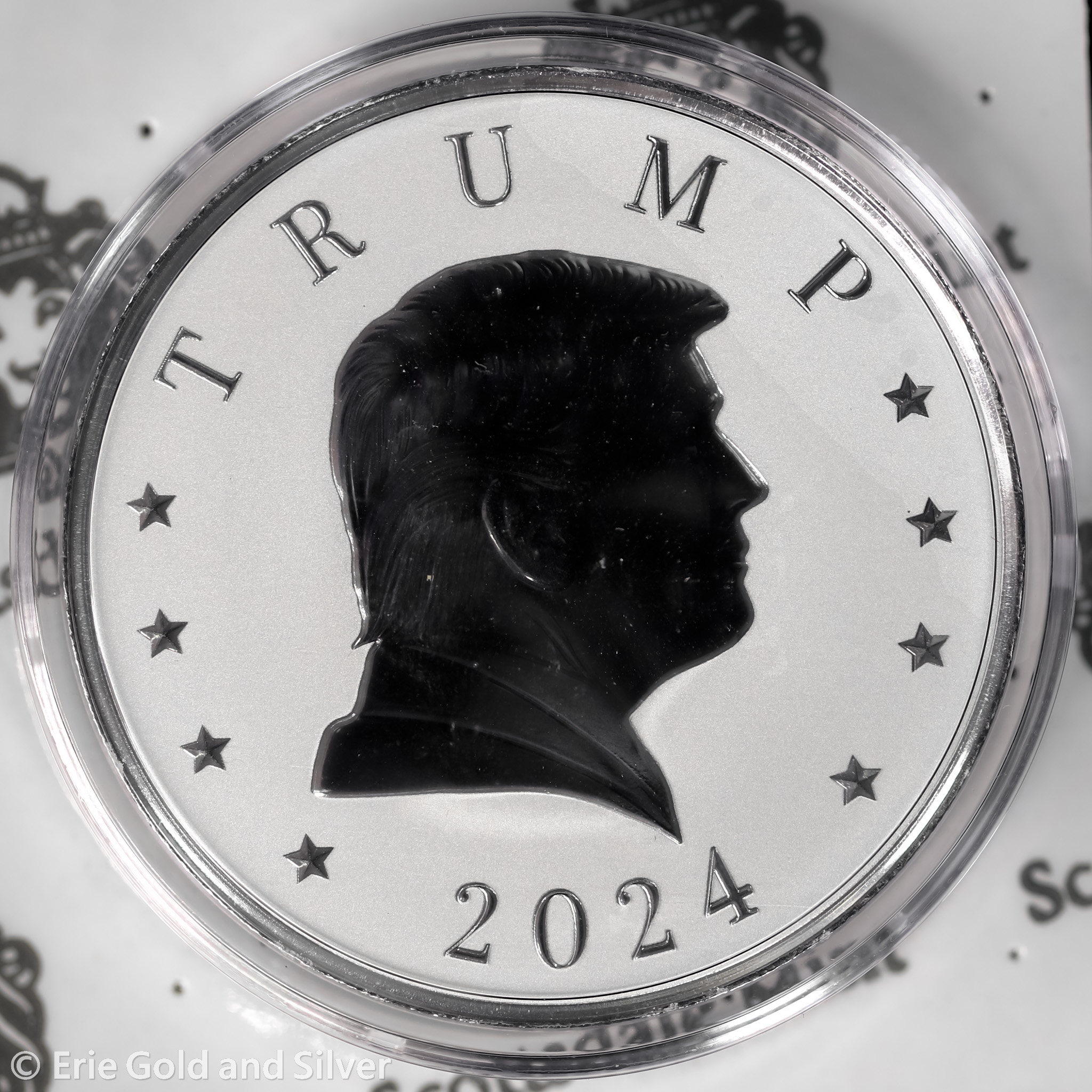 For sale is a 2024 Scottsdale Mint Reverse Proof President Donald Trump 5 oz Fine Silver Round.