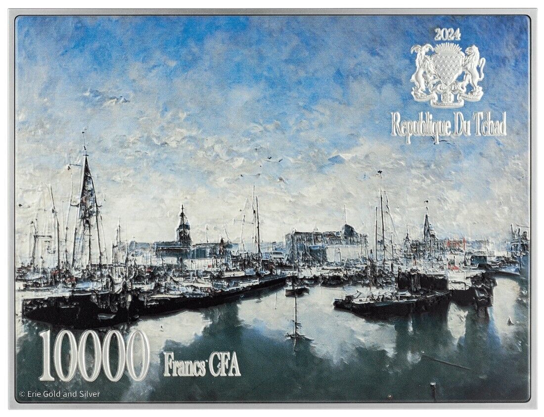 2024 Tchad 10000 Francs Impression Sunrise Claude Monet Silver Coin Mintage 399