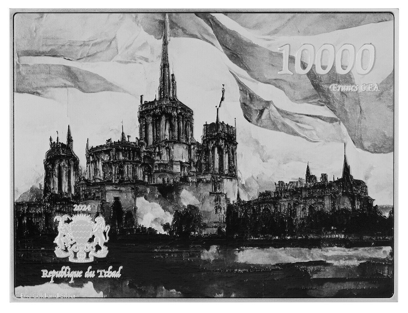 2024 Tchad 10000 Francs Liberty Leading the People 2.5 z Silver Coin Mintage 399