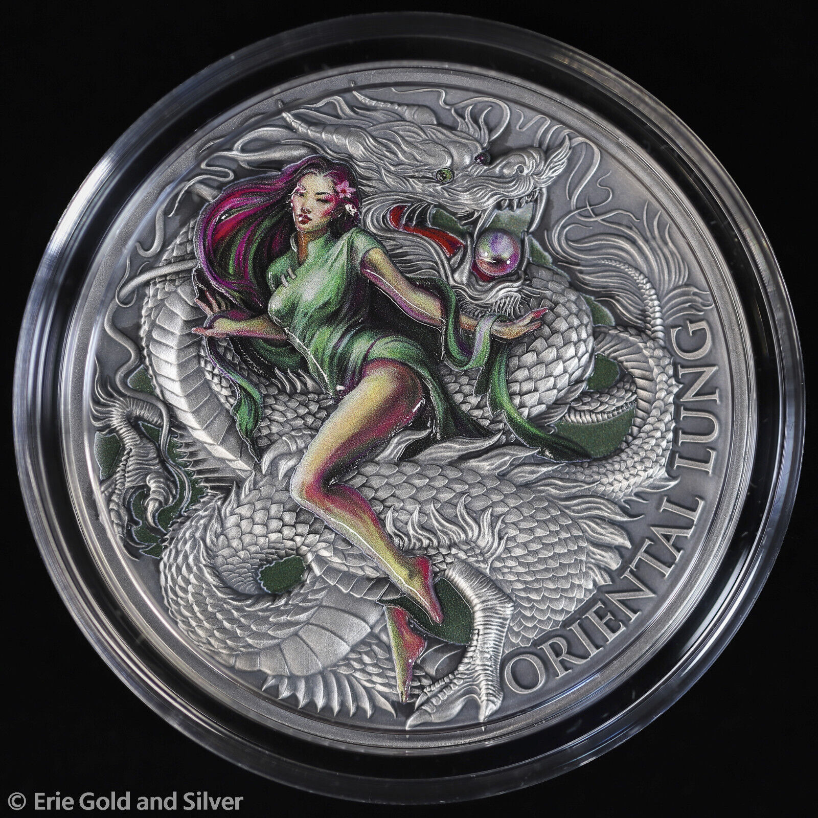 2024 The Dragonology Oriental Lung 2 oz Silver Antique Finish Coin in OGP