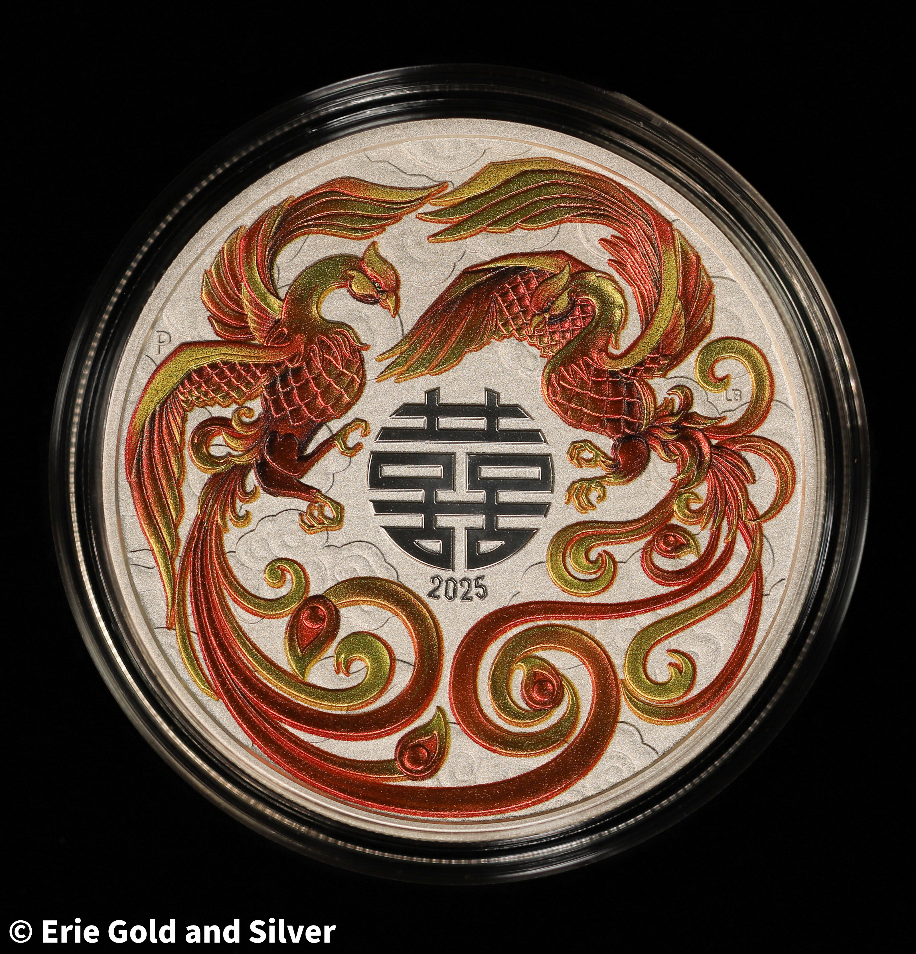 2025 $1 Australian Chinese Myths & Legends Double Phoenix 1 oz Silver Red Coin