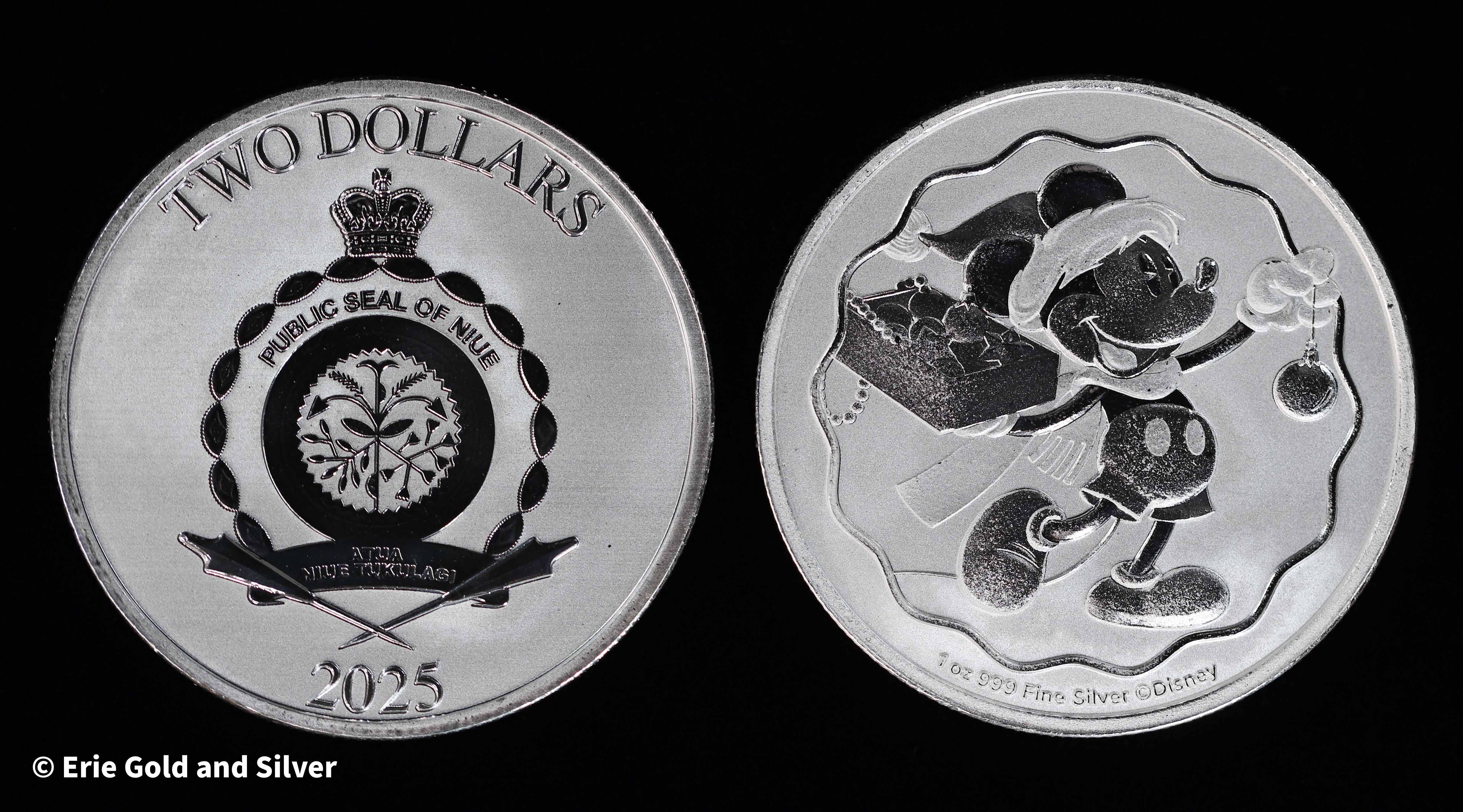 2025 $2 Niue Disney Mickey Mouse Christmas 1 oz Silver Coin