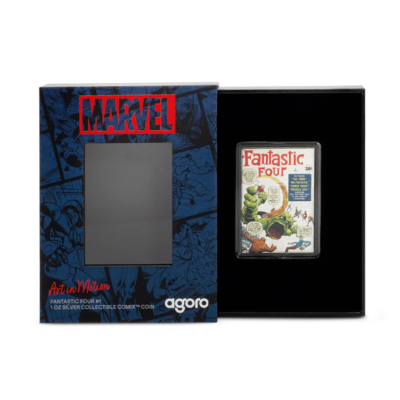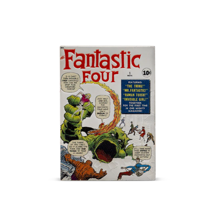 Own a piece of Marvel history with the 2025 $2 Niue Fantastic Four #1 silver coin, a tribute to the legendary comic that launched the Marvel Age! Struck from 1 oz of .999 fine silver, this officially licensed coin features vibrant, full-color artwork replicating the iconic 1961 cover that introduced Mr. Fantastic, Invisible Woman, Human Torch, and The Thing. A nostalgic must-have for comic fans and silver collectors alike, this release captures the magic of Marvel’s first family in stunning detail.