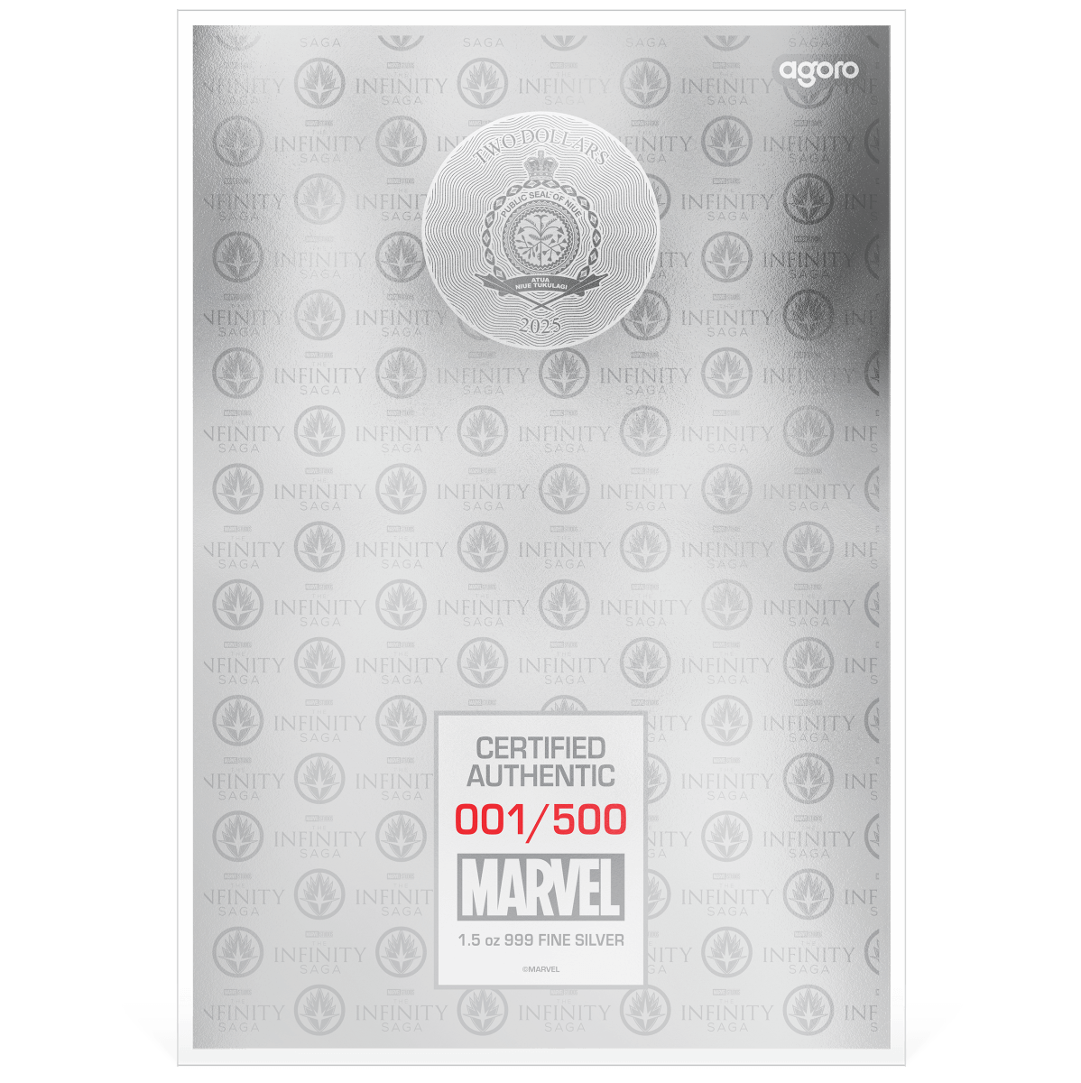 Celebrate the epic continuation of the Marvel Cinematic Universe with this 2025 $2 Niue silver foil honoring Avengers: Age of Ultron. Struck from 1.5 troy ounces of .999 fine silver, this officially licensed release features stunning, full-color artwork showcasing Earth's Mightiest Heroes as they face off against the menacing Ultron. A must-have for fans of The Infinity Saga, this legal tender collectible combines premium silver content with bold, cinematic design—perfect for display or adding to your Marvel memorabilia vault.