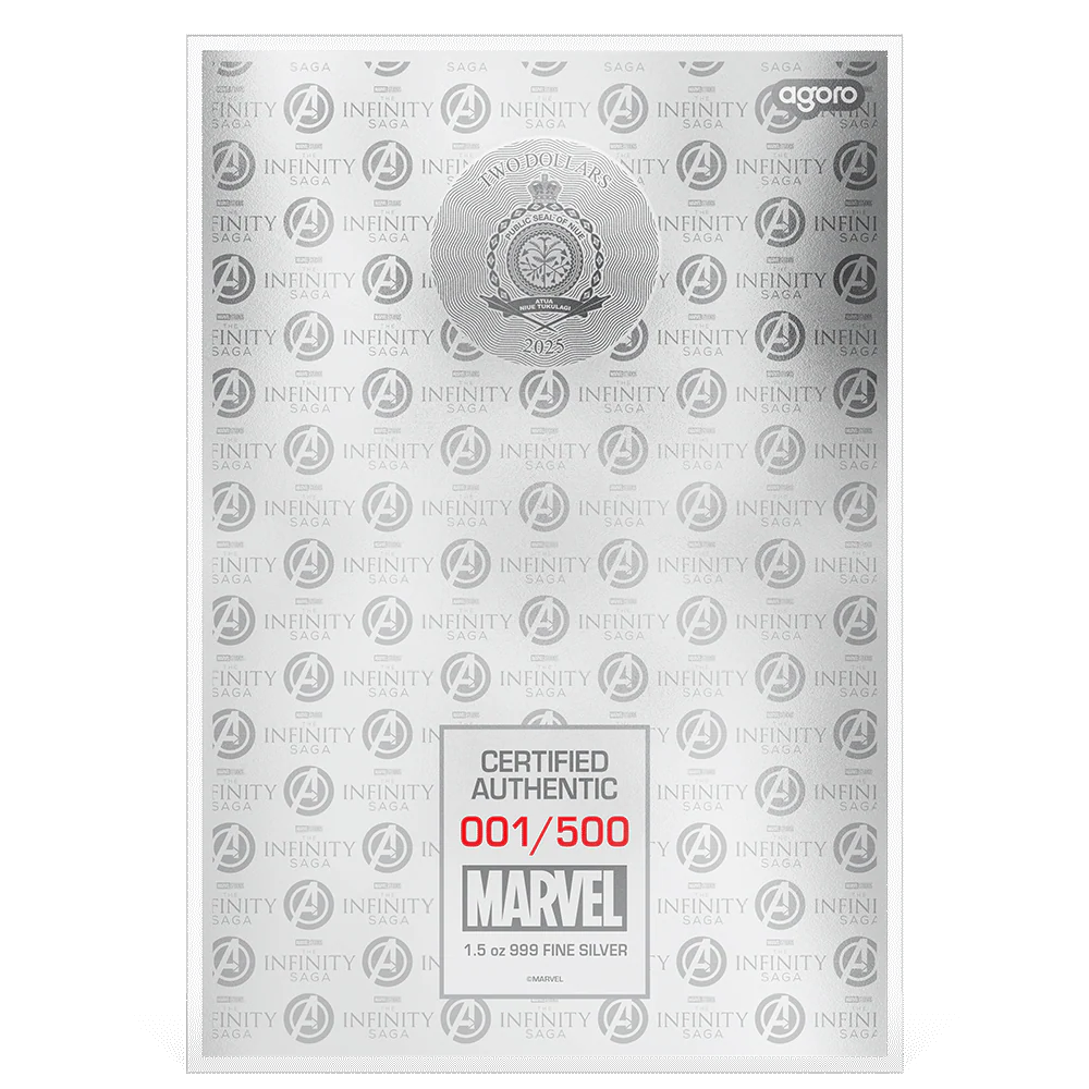 Honor Earth’s Mightiest Heroes with the 2025 $2 Niue Marvel The Infinity Saga – One: Avengers 1.5 oz Silver Foil. Struck in .999 fine silver and fully colorized, this officially licensed piece showcases dynamic artwork celebrating the original Avengers team. Presented in premium packaging, it’s an essential addition for Marvel, movie, and foil collectors. A standout collectible that captures the moment the Avengers assembled.