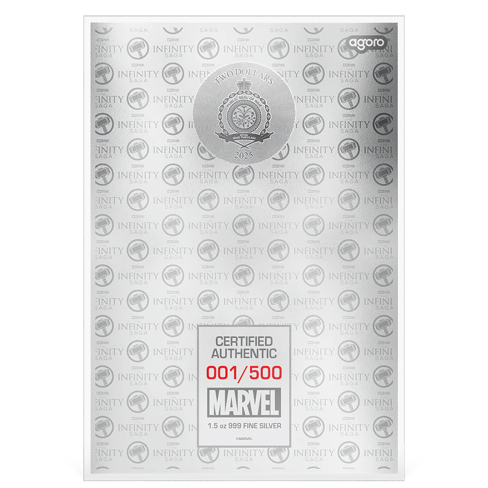 Celebrate the cosmic saga with the 2025 $2 Niue Marvel The Infinity Saga – Thor: The Dark World 1.5 oz Silver Foil. This officially licensed collectible features vivid colorized artwork from the film, struck in 1.5 ounces of .999 fine silver. Presented in premium packaging, it’s a must-have for Marvel fans and foil collectors alike. A striking display piece that captures the power and legacy of the God of Thunder.