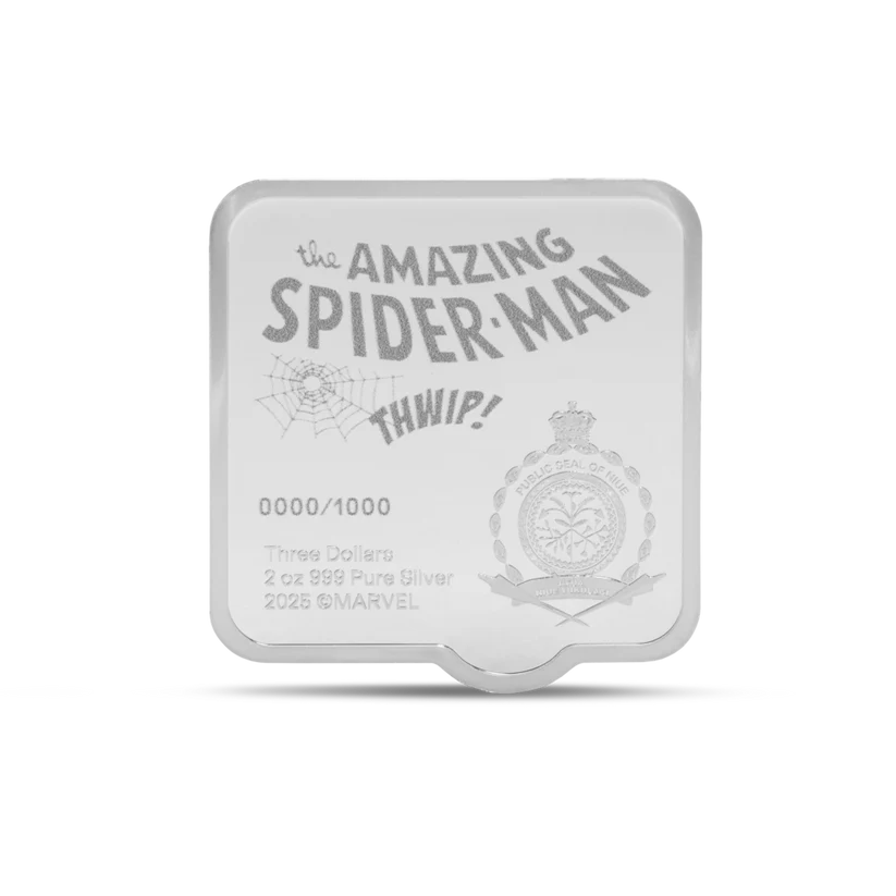 Swing into action with the 2025 $3 Niue Marvel Spider-Man “Thwip” 2 oz Silver Coin. Struck from 2 ounces of .999 fine silver, this dynamic release captures Spider-Man mid-web-sling, complete with bold comic-style artwork and vibrant colorized detail. Officially licensed by Marvel and presented in its GOP packaging, this high-impact collectible is perfect for fans of Spider-Man, classic comics, and premium silver pieces.