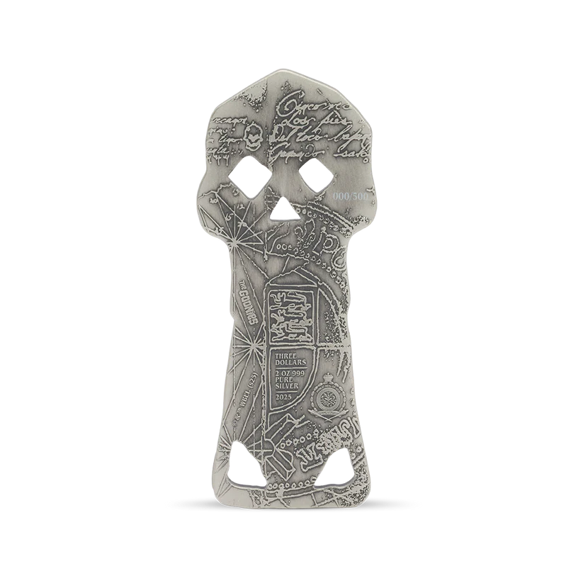 Unlock adventure with the 2025 $3 Niue Goonies Copper Bones Skeleton Key silver coin! Struck from 2 oz of .999 fine silver, this officially licensed release pays tribute to the iconic artifact from the cult-classic film The Goonies. Featuring a high-relief design that captures the weathered, treasure-map mystery of the Copper Bones key, this coin is a standout piece for fans of 1980s pop culture, movie memorabilia collectors, and silver stackers alike. It’s not just a coin—it’s your ticket to “never say die” nostalgia.