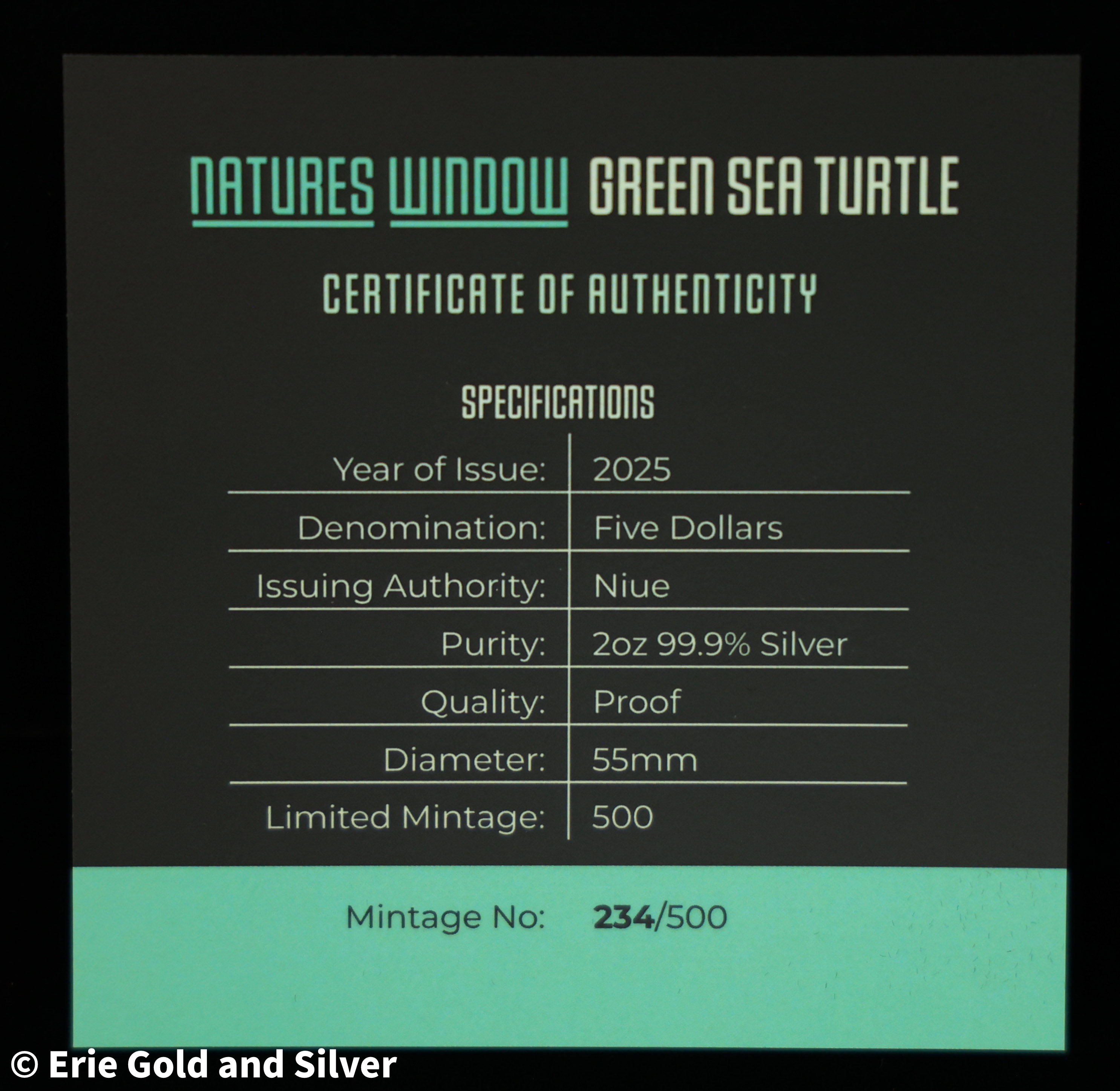2025 $5 Niue Nature’s Window – Green Sea Turtle 2 oz Silver Coin