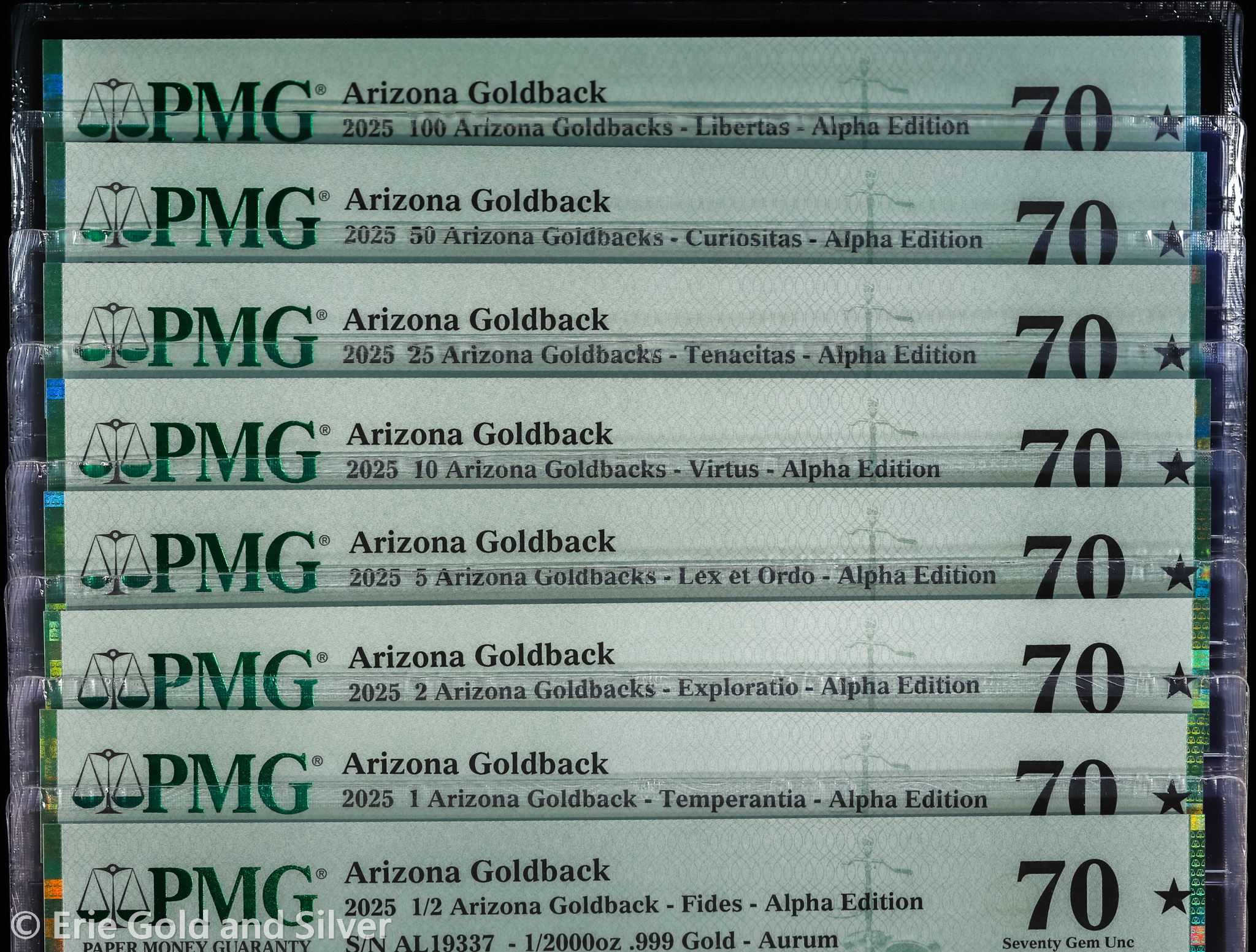 Full 8-Note Set of PMG Graded Arizona Goldbacks