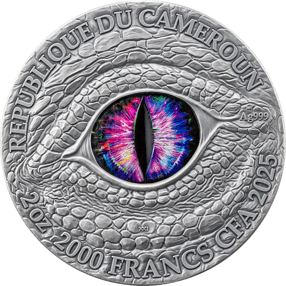 2025 Cameroon Dragonology Stonegaze Basilisk 2 oz Silver Antiqued Coin