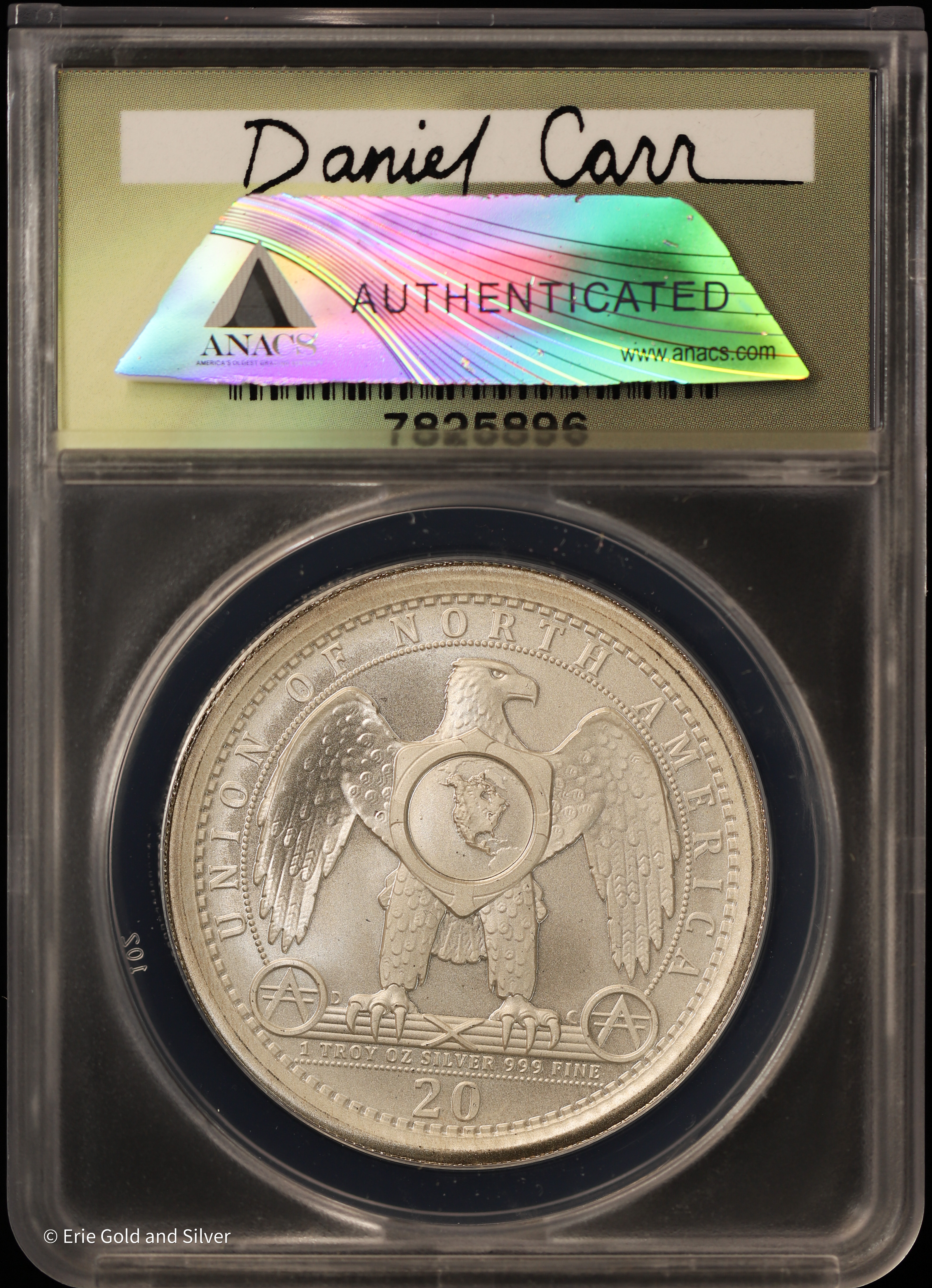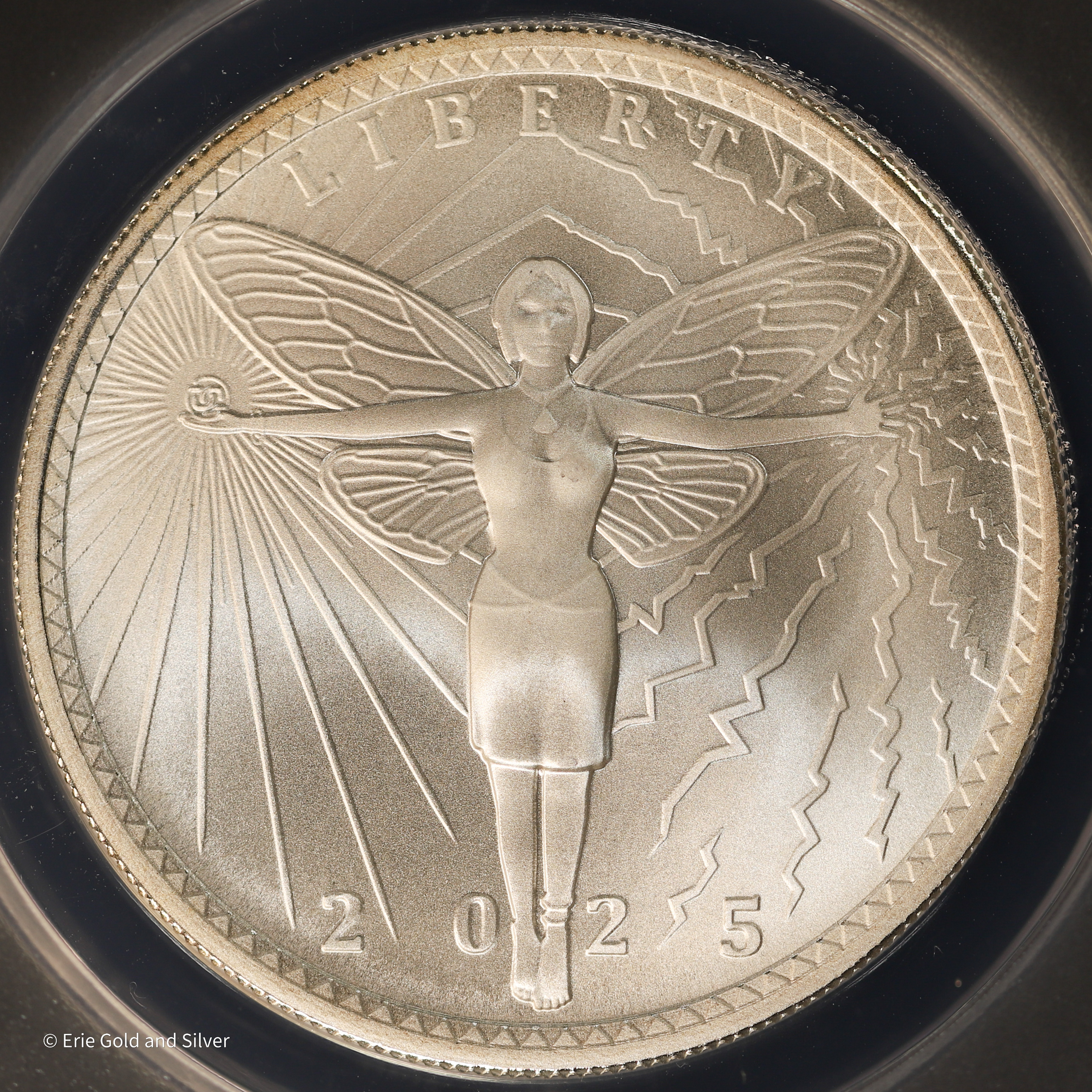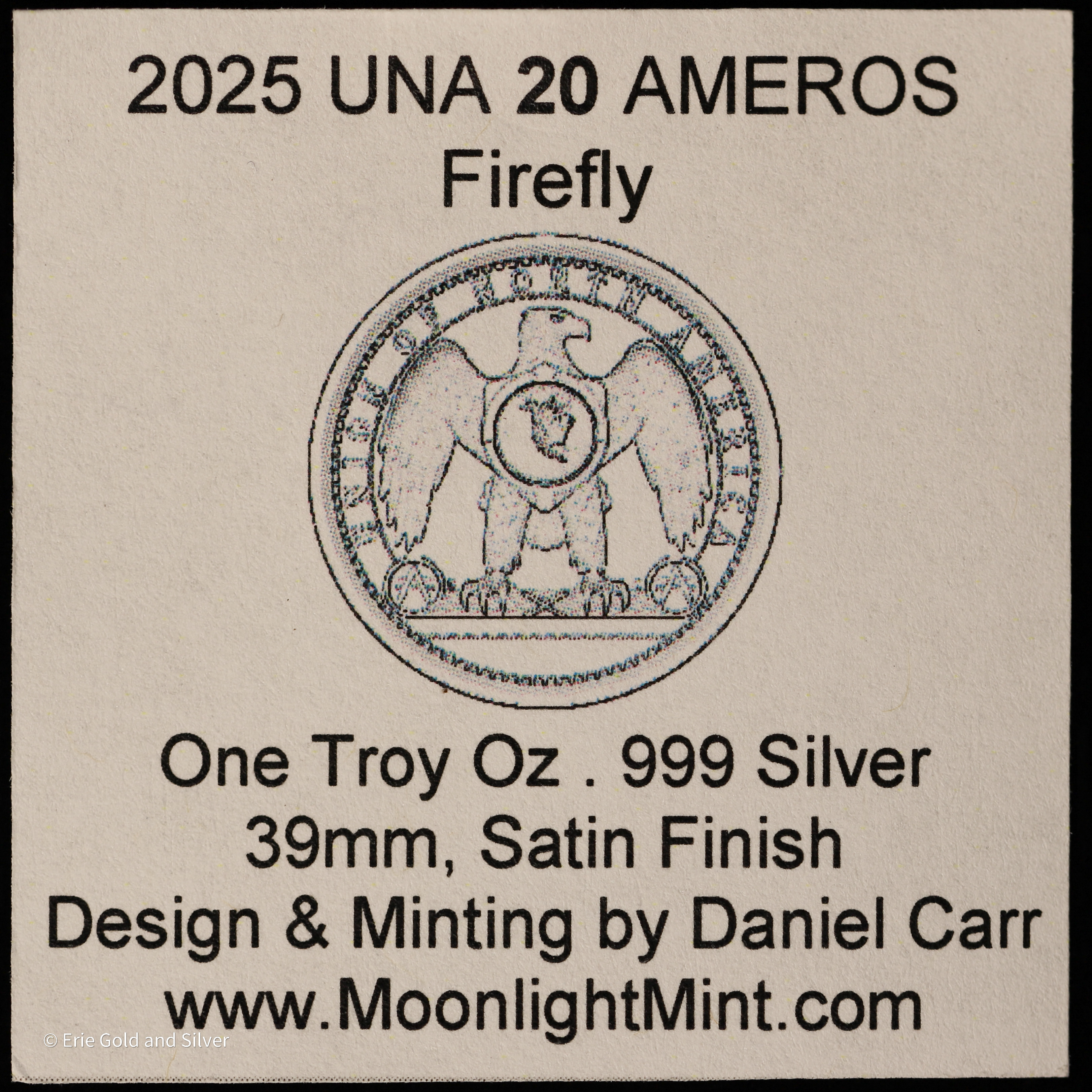 For sale is a 2025-D Dan Carr Concept 20 Ameros Firefly 1 Oz Silver Token. Graded / Certified by ANACS at MS 69 Satin.