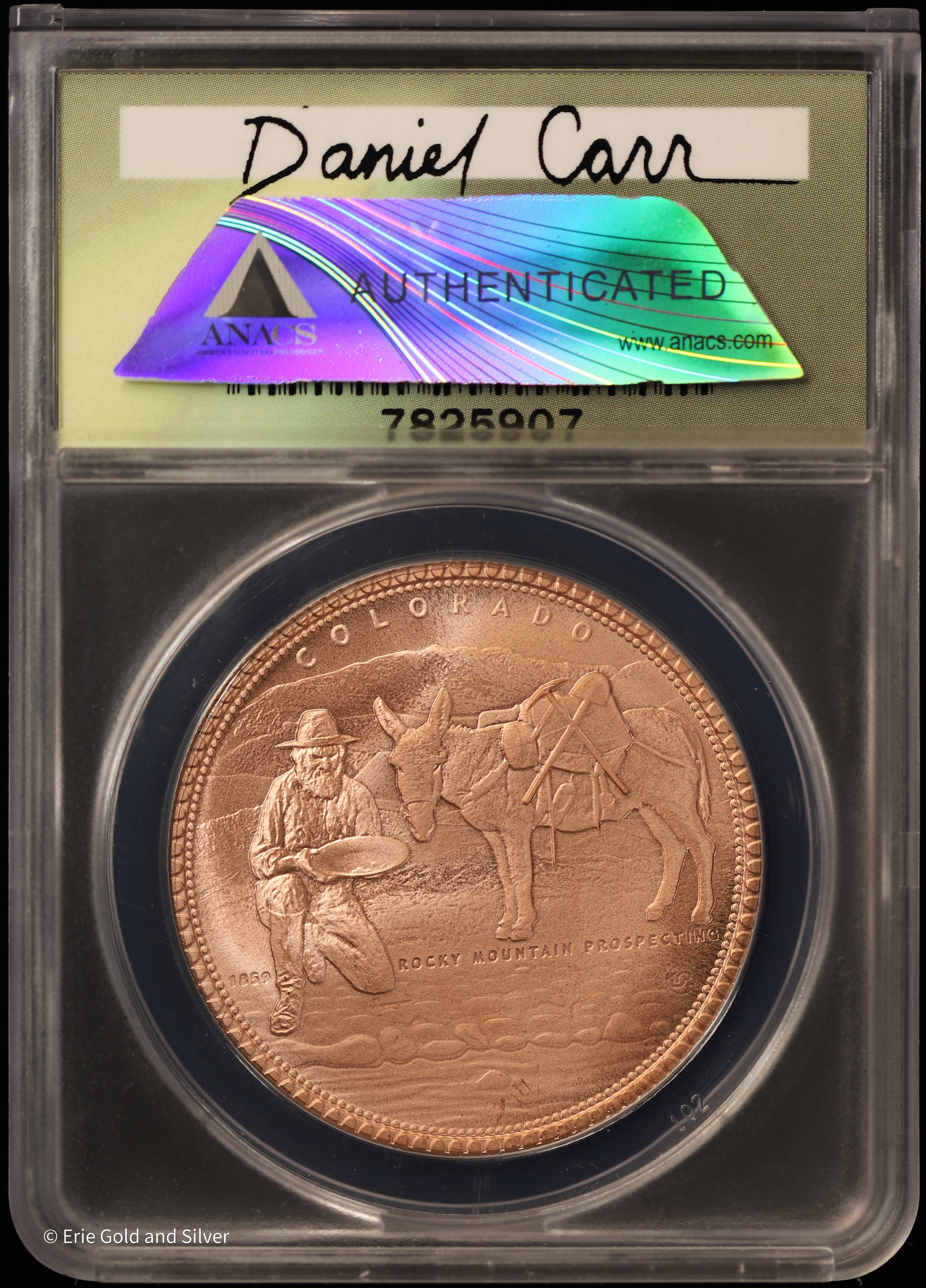 For sale is a 2025 Dan Carr Lesher Use Copper for Industrial Prosperity “A” Medal. Graded / Certified by ANACS at MS 69 Red.