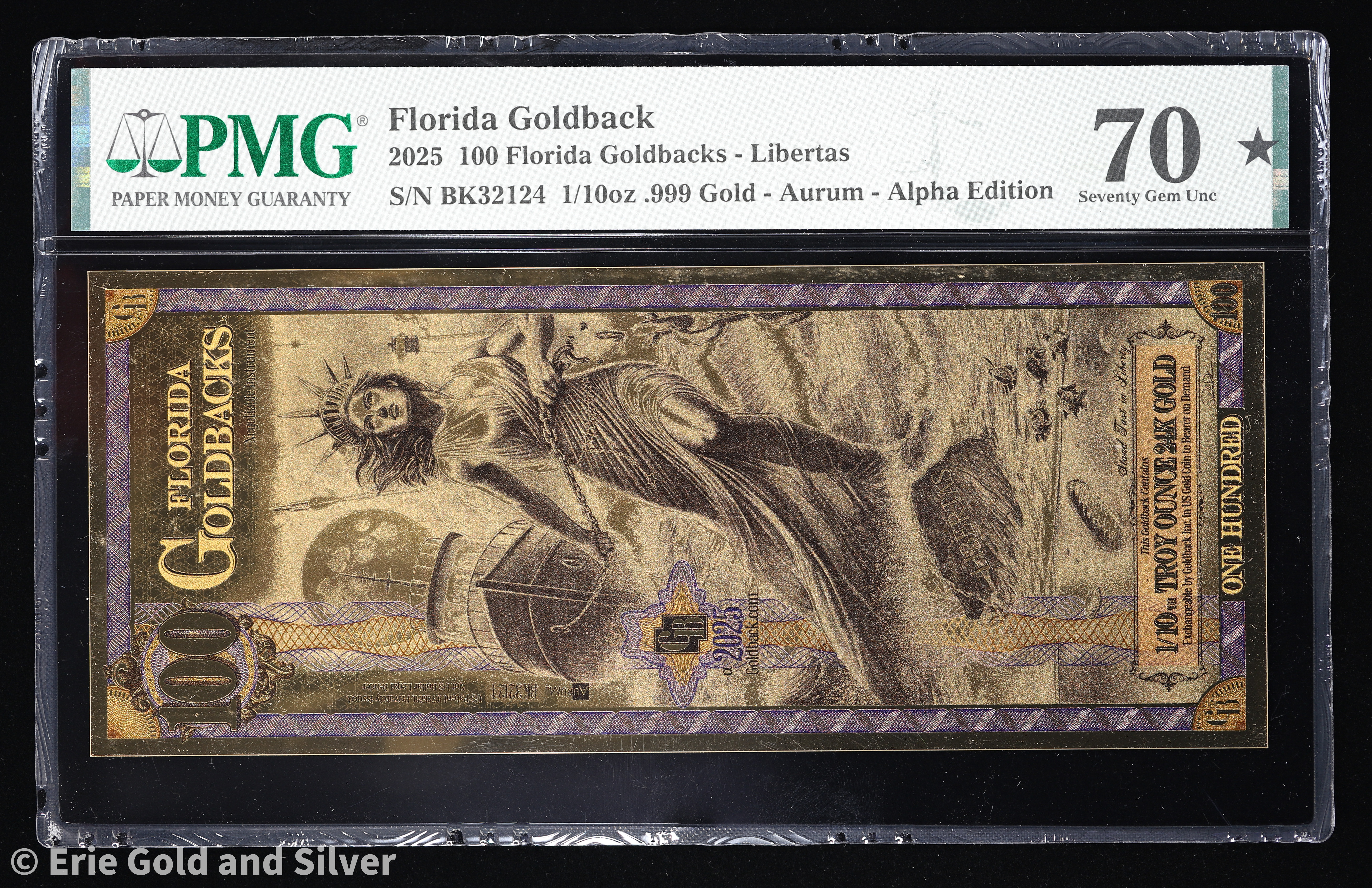Available in denominations of 1, 5, 10, 25, and 50, each Goldback features intricate artwork celebrating Florida’s history, culture, and values. Whether you're an investor, collector, or simply looking for a reliable alternative currency, the Florida Goldback is a great choice.