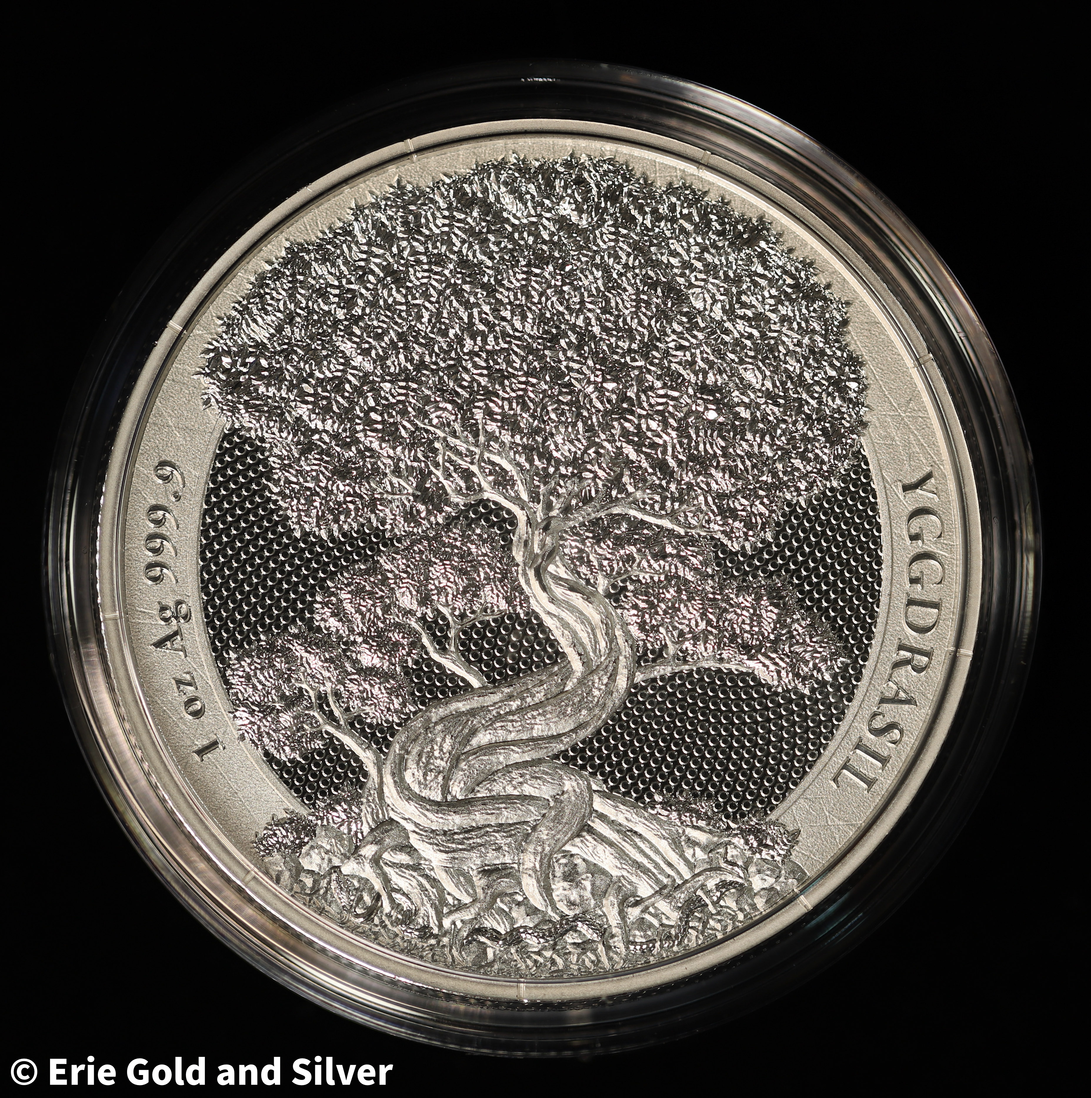Rooted in legend and struck with precision, the 2025 Germania Mythical Forest Yggdrasil 1 oz Silver BU Coin honors the sacred World Tree of Norse mythology. Minted in 1 troy ounce of .9999 fine silver, this Brilliant Uncirculated release features intricate detailing and rich symbolism. Accompanied by a serialized Certificate of Authenticity, it’s a powerful addition to Germania Mint’s acclaimed Mythical Forest series—ideal for fans of folklore, fantasy, and ultra-premium silver.