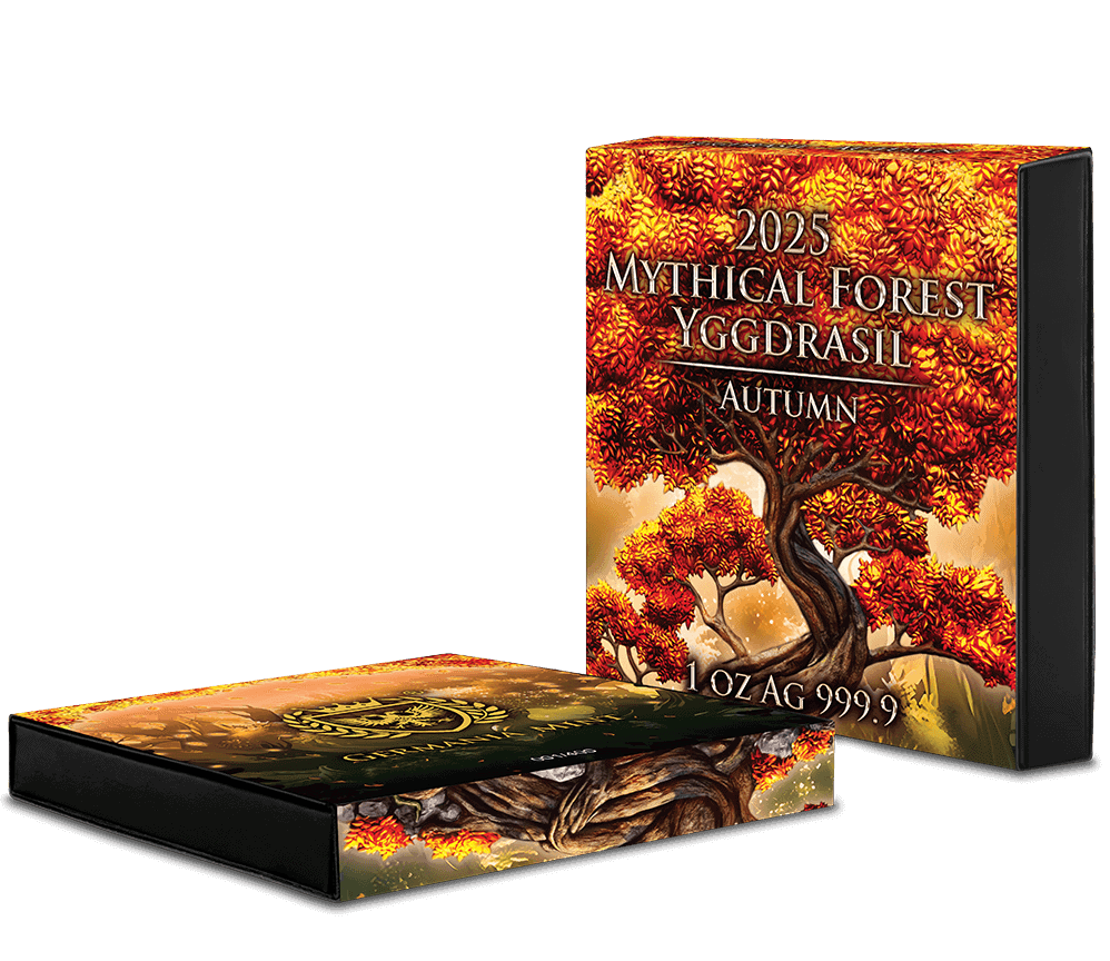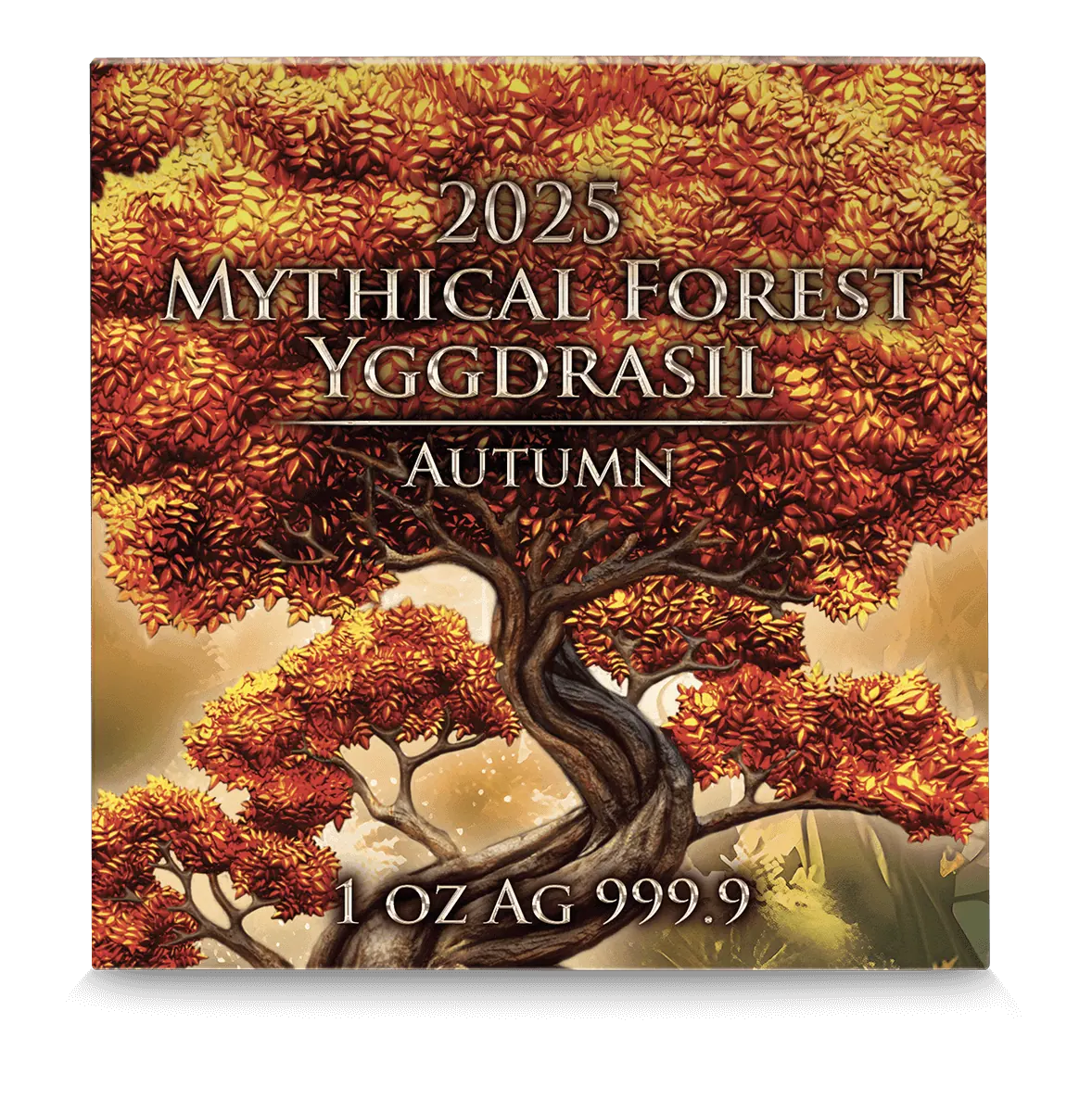 The World Tree turns with the seasons in the 2025 Germania Mythical Forest Yggdrasil 1 oz Silver Colorized Coin – Autumn Edition. Struck in 1 troy ounce of .9999 fine silver, this beautifully colorized release captures Yggdrasil—the sacred tree of Norse legend—bathed in rich autumn hues. As part of Germania’s acclaimed Mythical Forest series, it blends ancient symbolism with stunning modern artistry. A low-mintage treasure for mythology lovers and premium silver collectors alike.