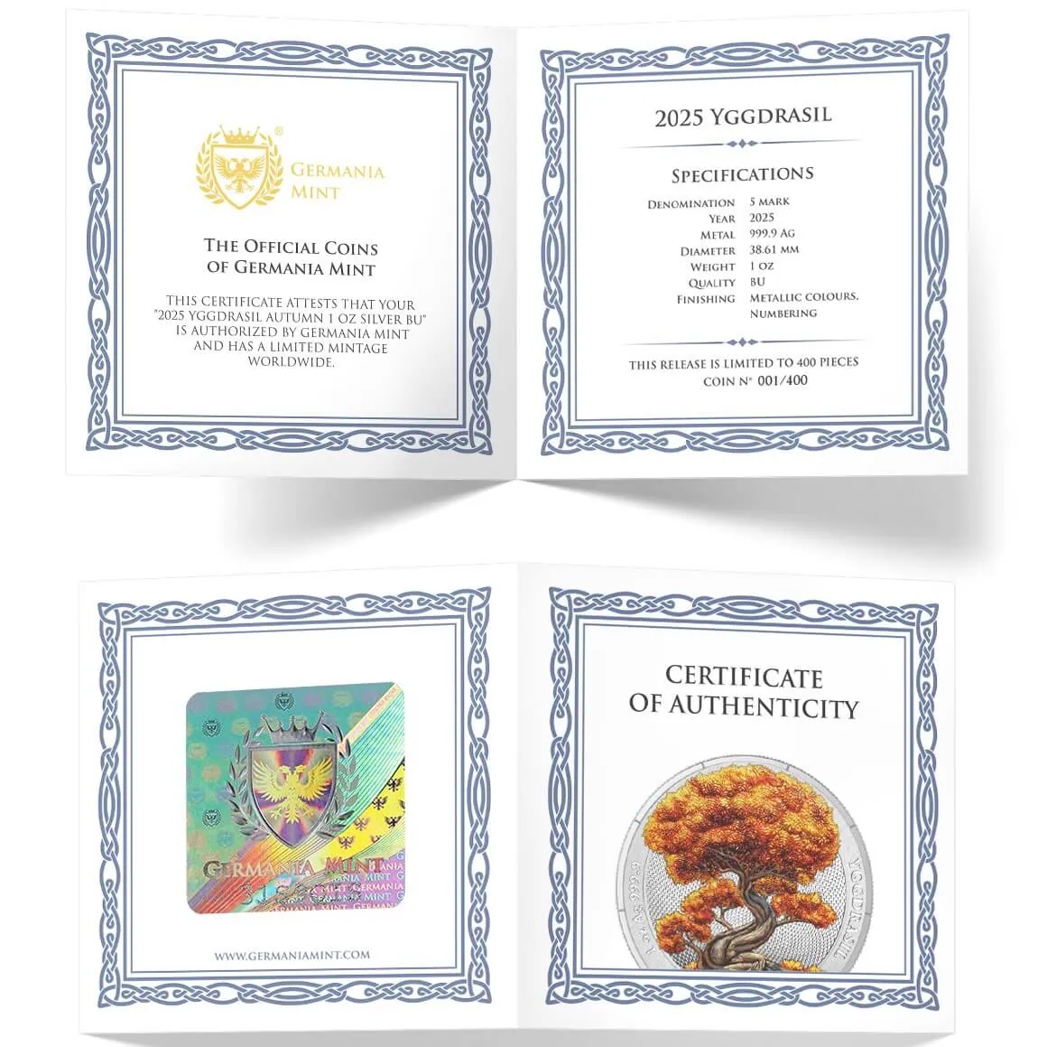 2025 Germania Mythical Forest Yggdrasil 1 oz Silver Colorized Coin Autumn