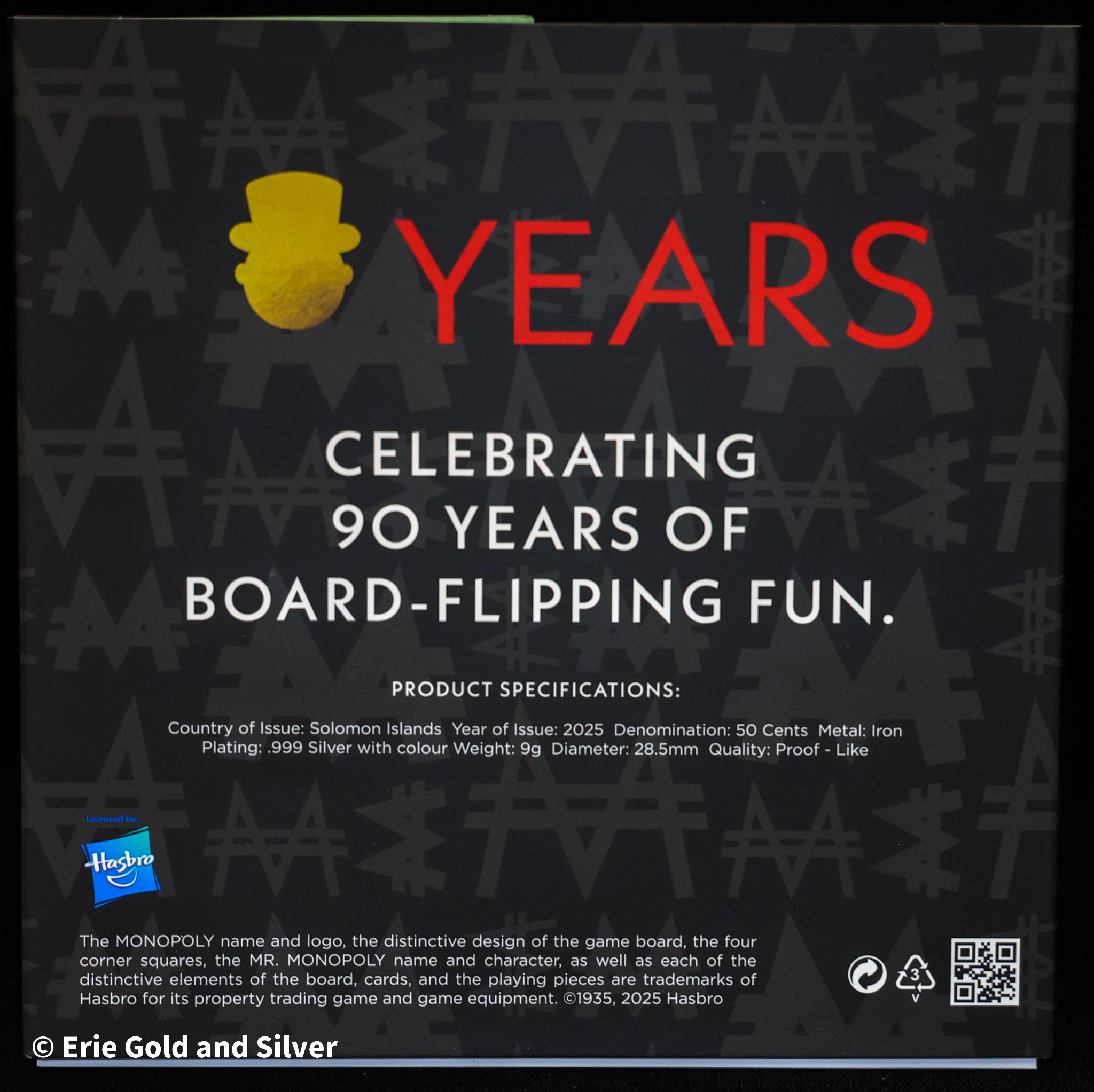 2025 Monopoly 90th Anniversary Silverplate Coin Set in OGP