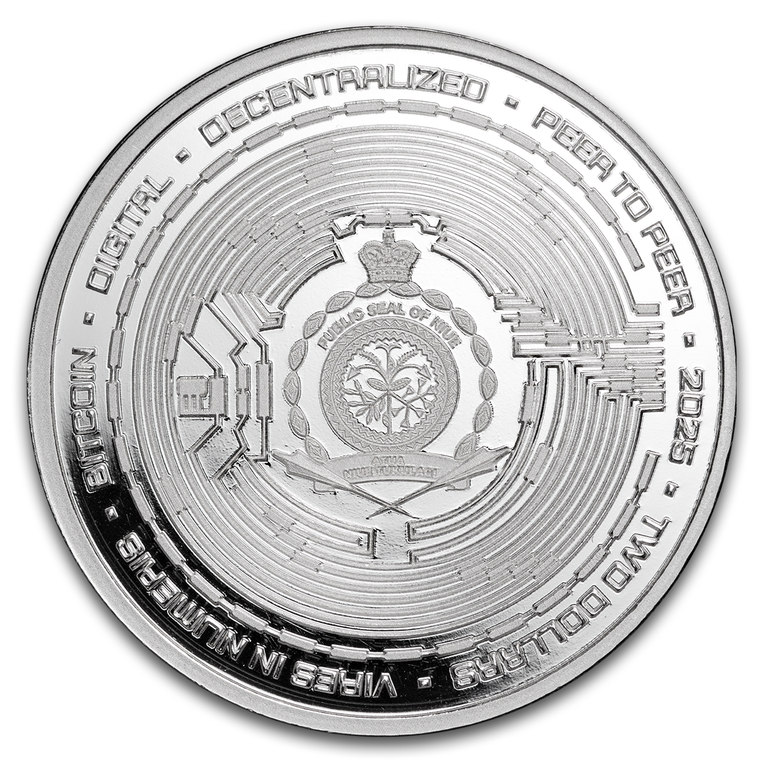 The 2025 Niue $2 1 oz Silver Bitcoin Colorized coin combines modern digital currency symbolism with tangible precious metal value. Issued by Niue and struck in 1 troy ounce of .999 fine silver, this coin features a detailed, colorized Bitcoin design that highlights the iconic “₿” symbol.