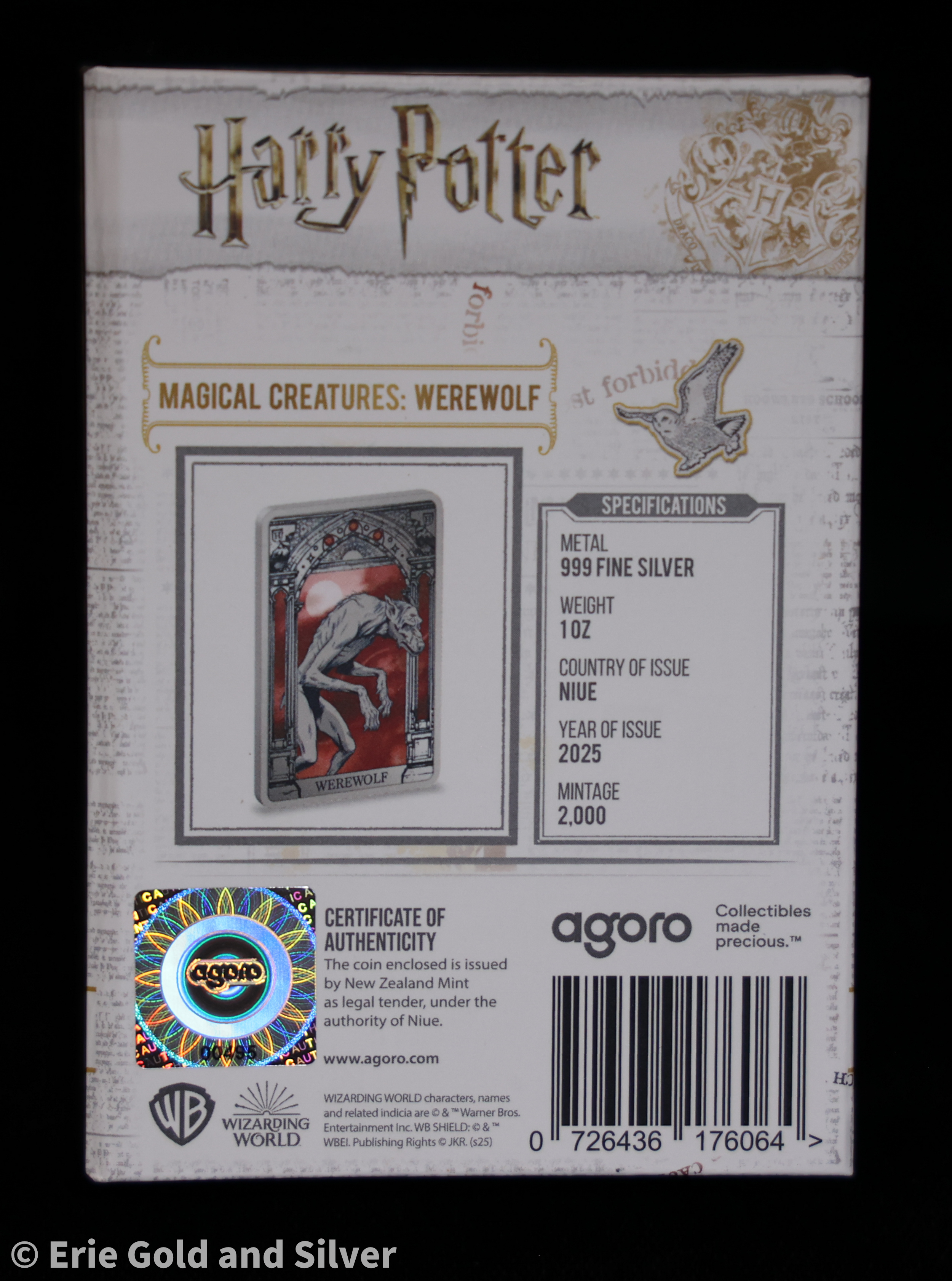 The 2025 Niue $2 Harry Potter Magical Creatures: Werewolf 1 oz Silver Coin is a captivating addition to the Magical Creatures series, celebrating the enigmatic werewolf from the Wizarding World. Struck by the New Zealand Mint, this coin combines intricate design with limited availability, making it a prized collectible for Harry Potter enthusiasts and numismatists alike.