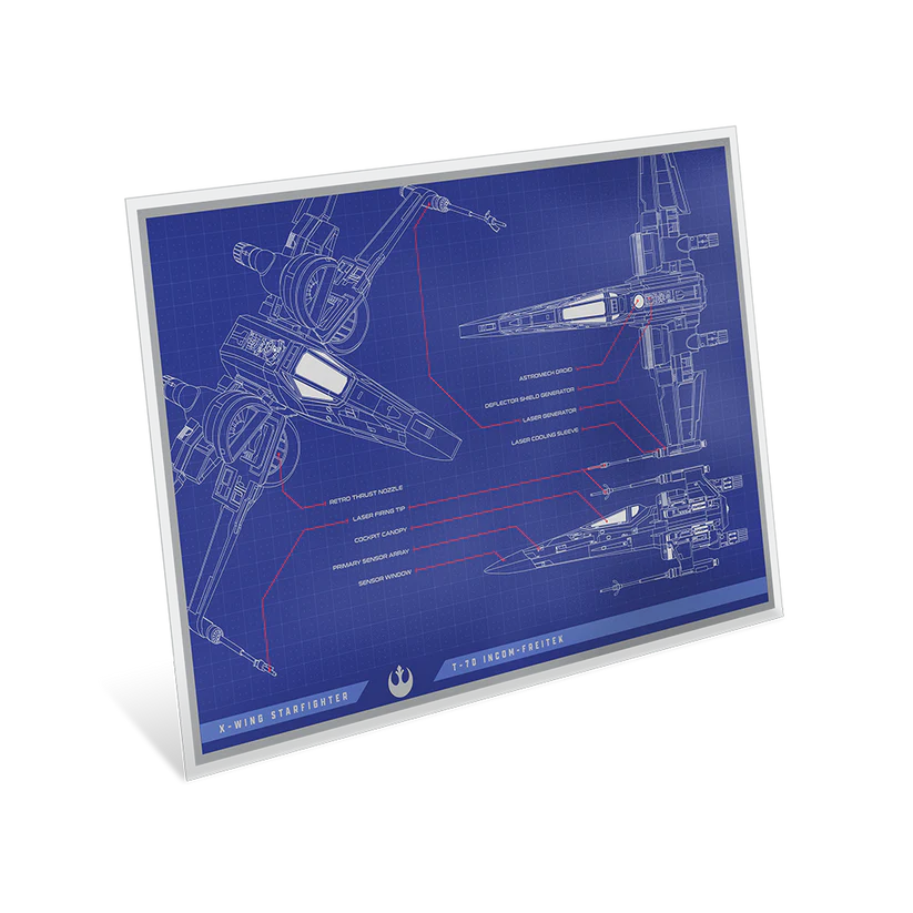 2025 $2 Niue Star Wars X-Wing T-70 Blueprint – 1 oz Silver Foil