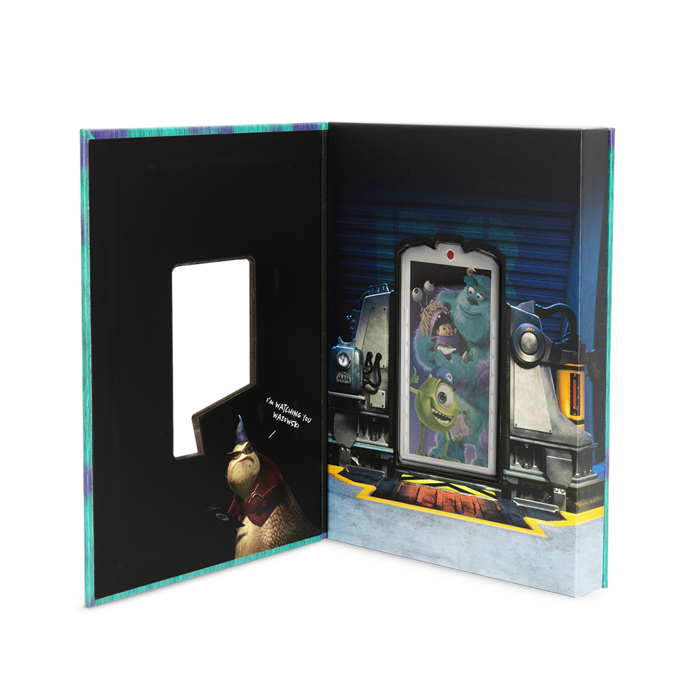 Packaging: Presented in a cheerful, Monsters, Inc.-themed display case resembling Boo’s closet door, complete with playful graphics like Sulley’s fur and Mike’s employee badge. A Certificate of Authenticity verifies its limited-edition status.